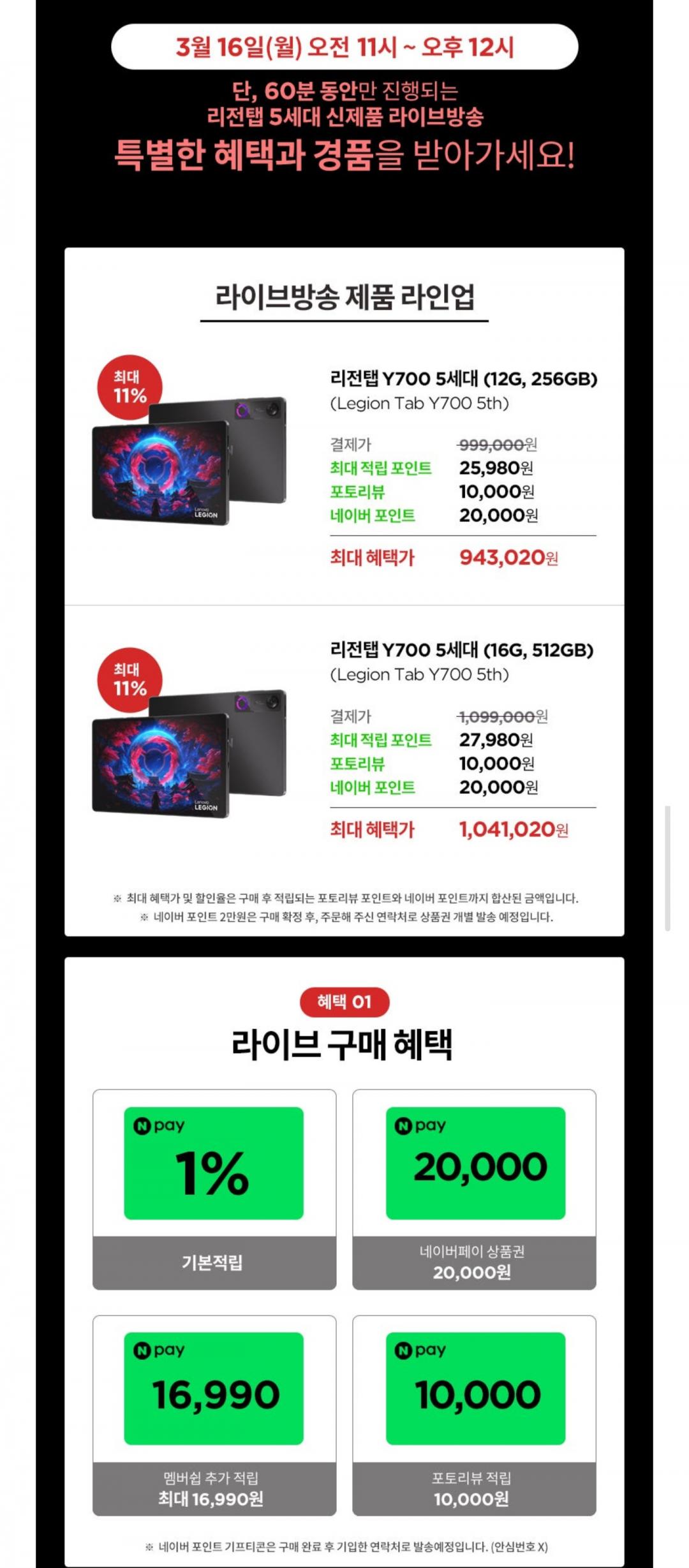 [네이버] 레노버 리전탭 Y700 5세대 (943,020원/무료)