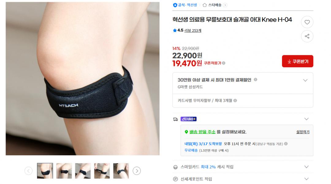 [g마켓] 혁선생 의료용 무릎보호대 슬개골 아대 Knee H-04 20,610원/무배 > 국내핫딜