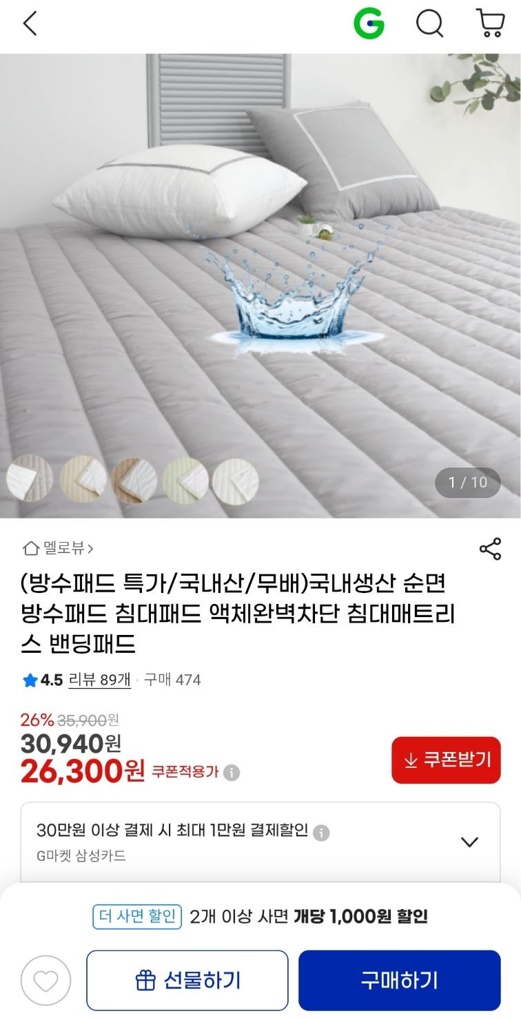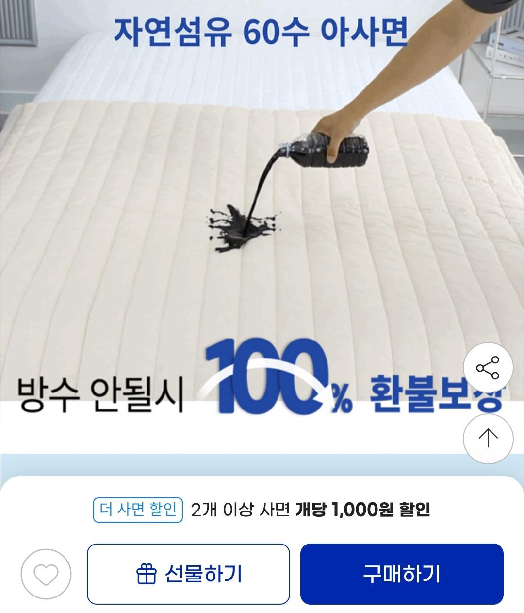 [지마켓] 국내산 순면 방수패드 침대패드 (26,300원 / 무료배송) > 국내핫딜