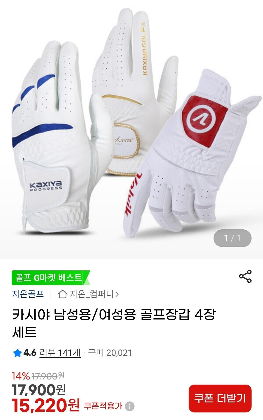 [지마켓]카시야 남성용/여성용 골프장갑 4장세트(15,220원/무배) > 국내핫딜