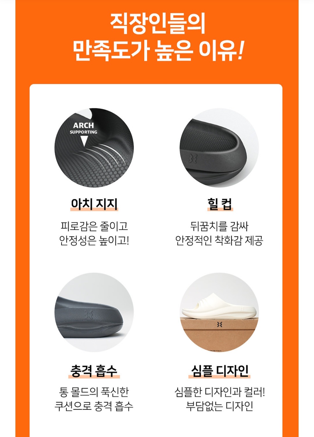 하루 종일 신어도 편하도록 쿠션감이 부드럽고 발을 안정적으로 잡아줘서 오래신어도 편하다고 하네요~