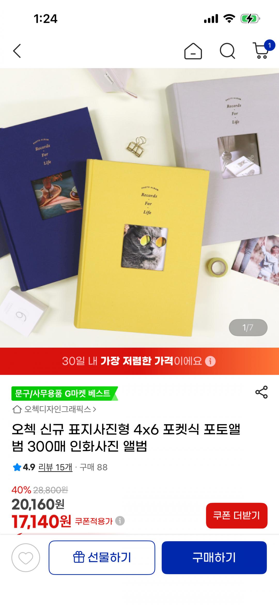 [지마켓] 표지사진형 4x6 포켓식 포토앨범 300장 보관 가능 (17,140원/무료) > 국내핫딜