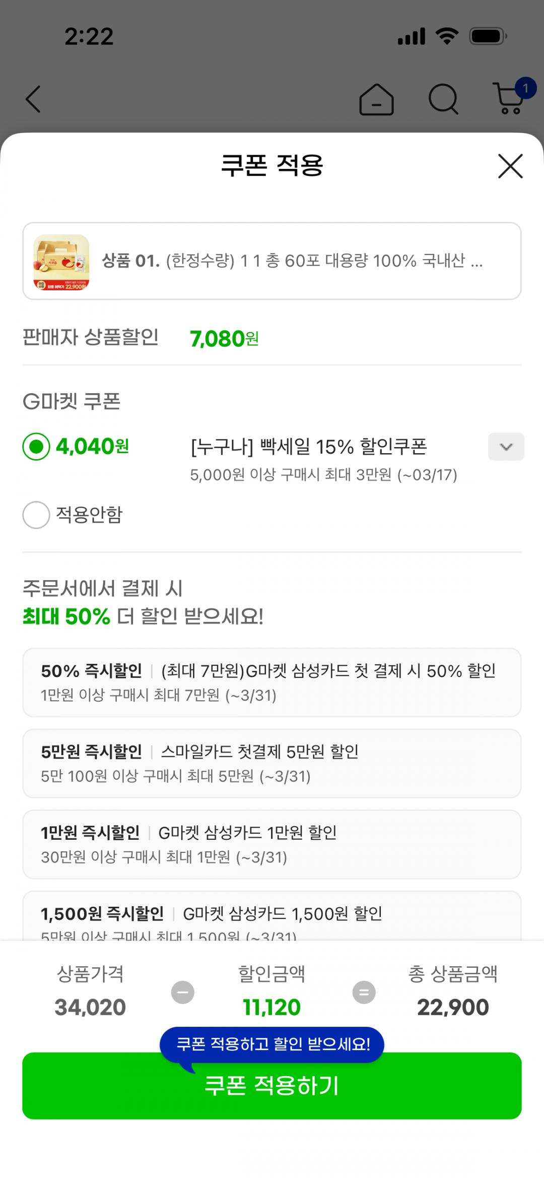 [지마켓] 100% 국내산 거창 사과즙 60포 대용량 (22,900원/무료) > 국내핫딜