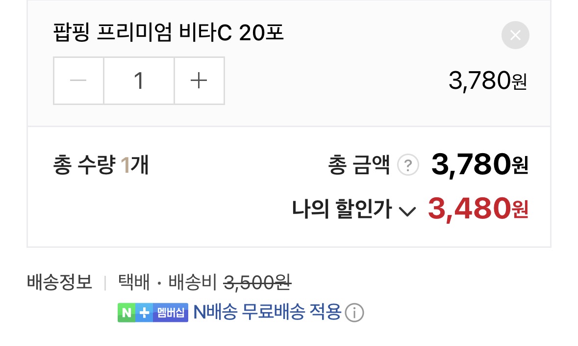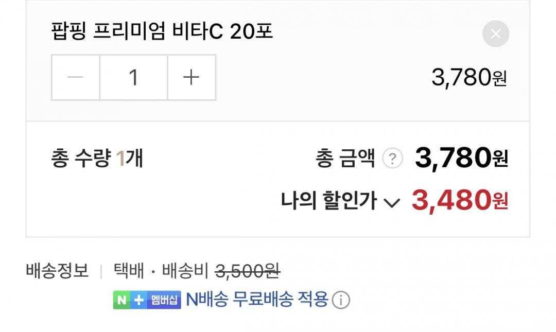 [네이버]팝핑 비타민C 20포 (3,480원/네멤무료)