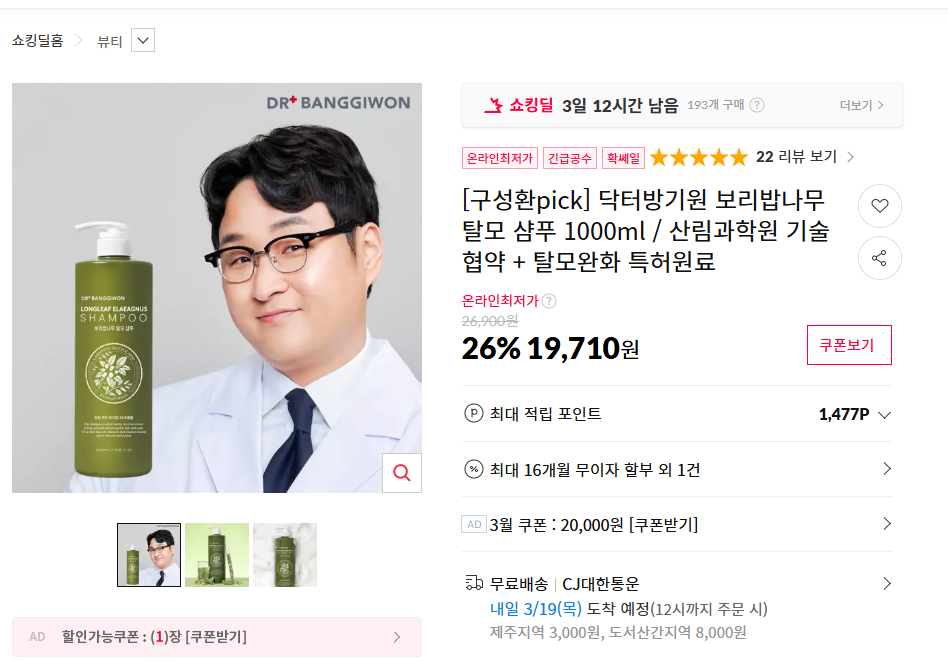 [11번가] 닥터방기원 보리밥나무 탈모샴푸 1000ml (19,210원/무료배송) > 국내핫딜