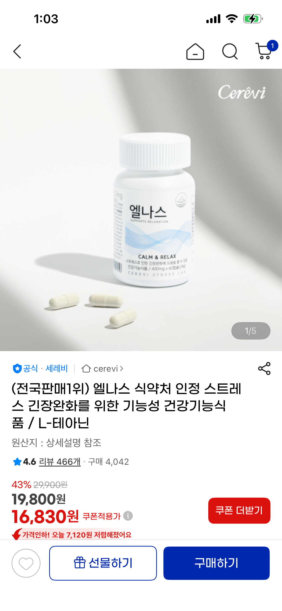 [지마켓]엘나스 식약처 인정 스트레스 긴장완화제 (16,830원/무료) > 국내핫딜