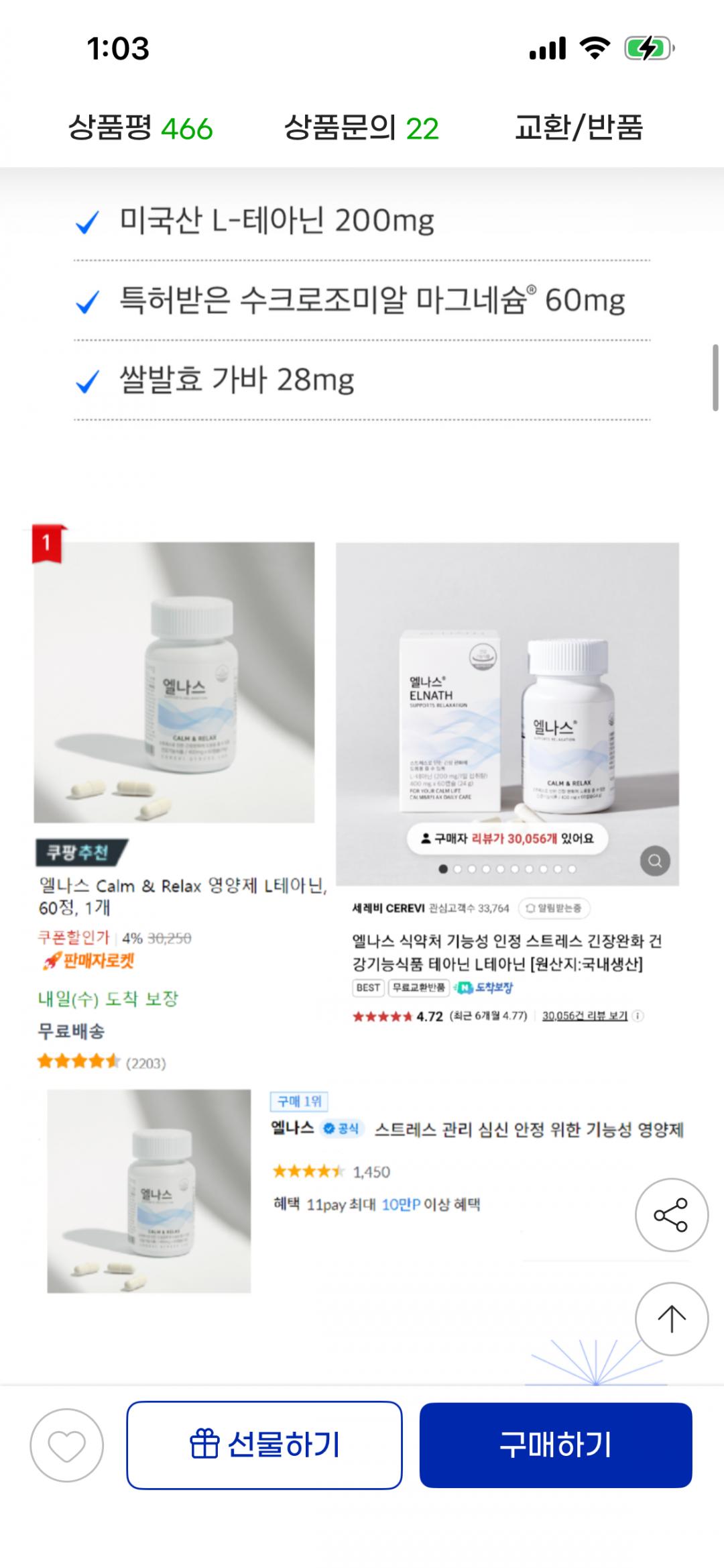 [지마켓]엘나스 식약처 인정 스트레스 긴장완화제 (16,830원/무료)