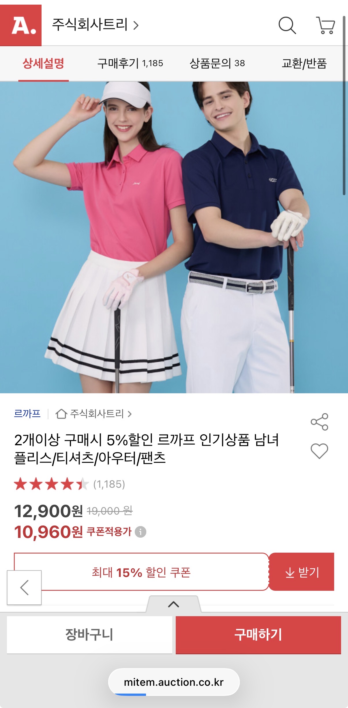 [옥션] 르까프 인기상품 남녀 플리스/티셔츠/아우터/팬츠 10,960원/무배