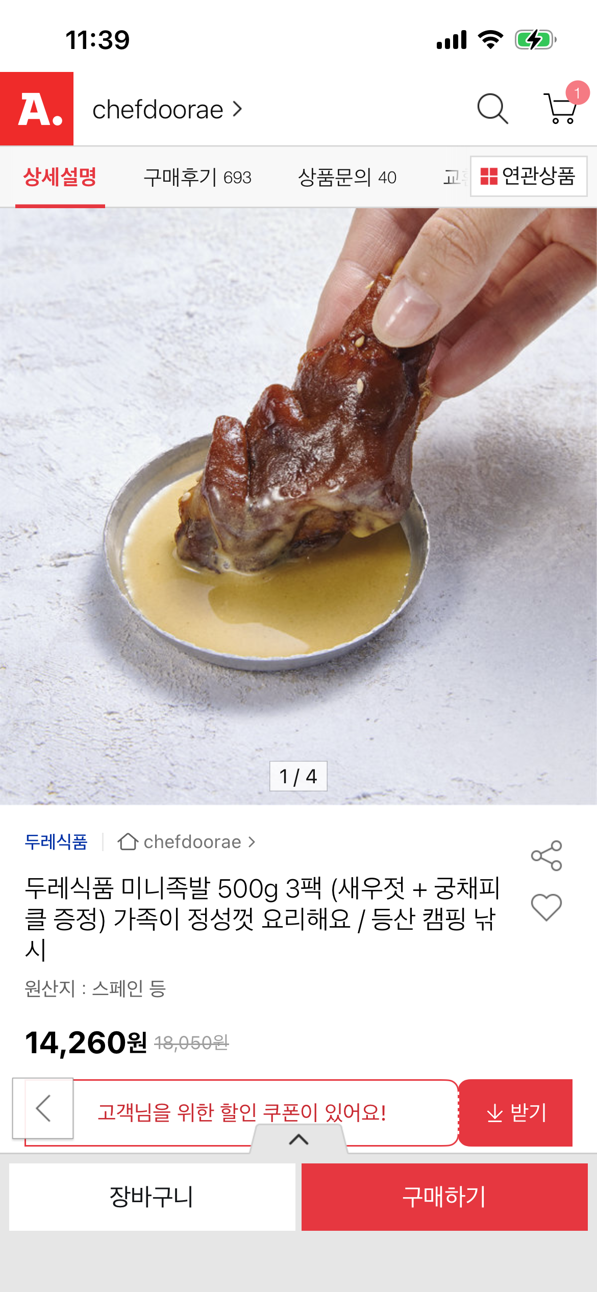 [옥션] 두레식품 미니족발 500g 3팩 새우젓 + 궁채피클 증정 (14,260/무료) > 국내핫딜