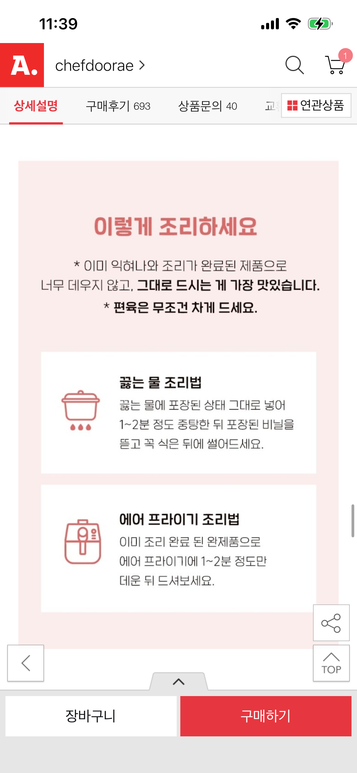 이미 한번 조리된거라서 에프에 살짝 데우면 되더라구요