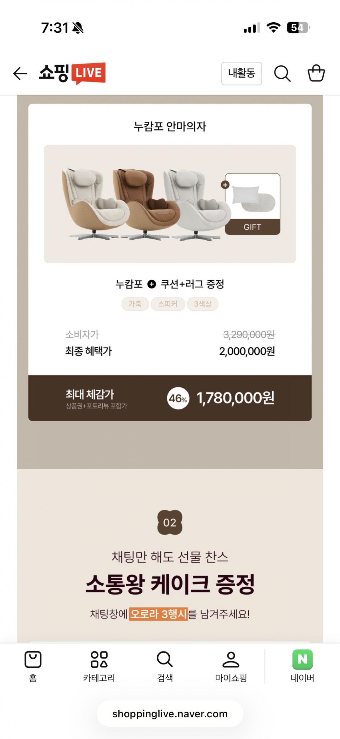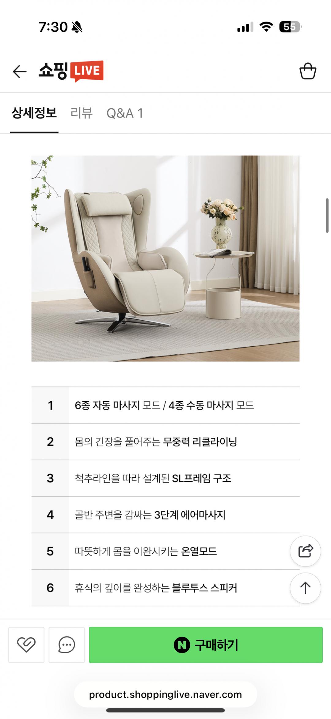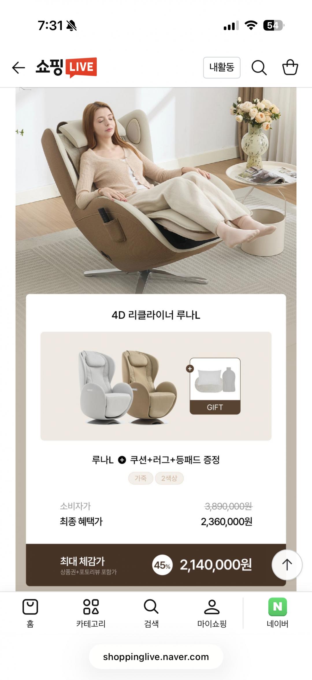 누하스에서 신상 리클라이너 안마의자 라방 할인 한대요~!