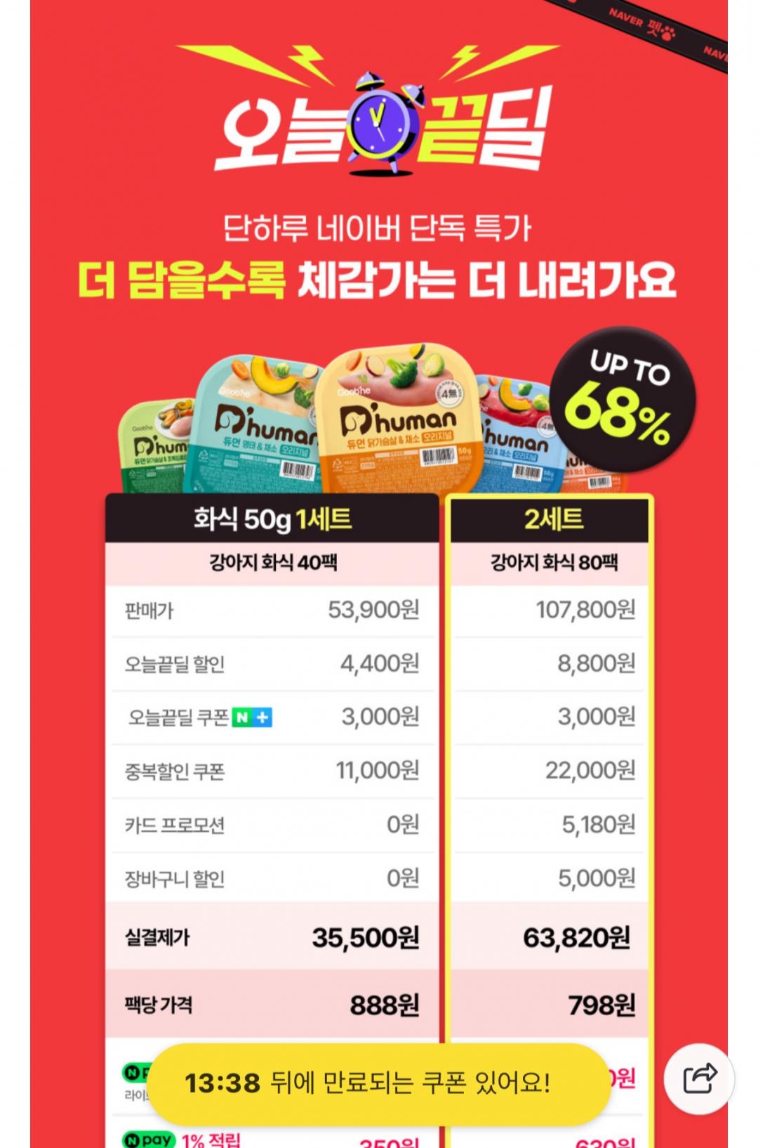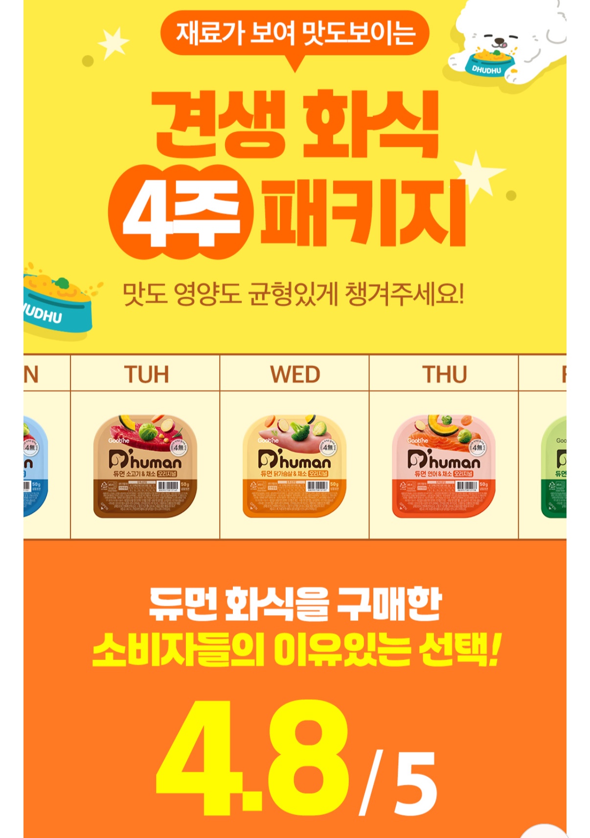 [네이버]듀먼 강아지 화식 50g 40팩 (35,500원/무료)