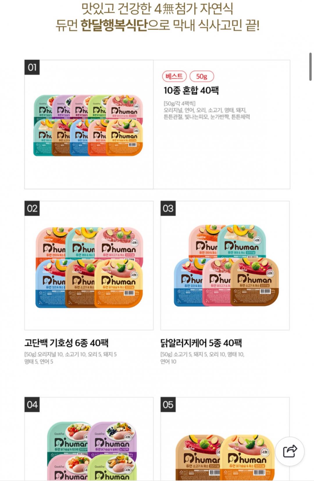 [네이버]듀먼 강아지 화식 50g 40팩 (35,500원/무료) > 국내핫딜