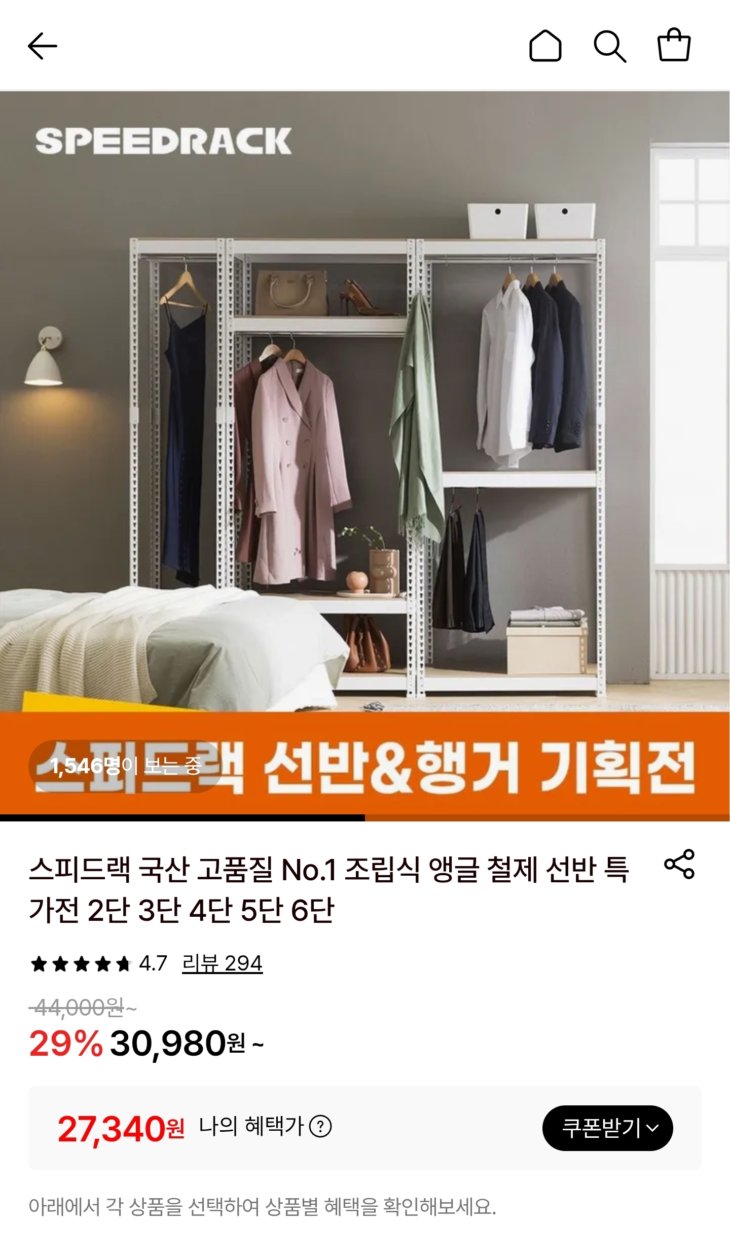[롯데온] 스피드랙 조립식 앵글 철제 선반 2단 (27,340원/무료) > 국내핫딜