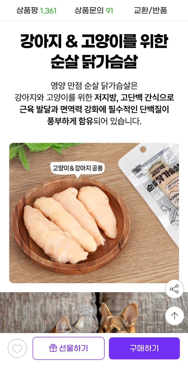 저지방 고단백이라 영양 간식으로 챙겨주거나