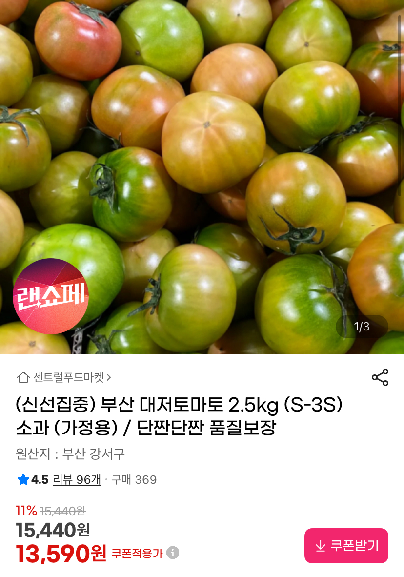 소과 기준인데 대저토마토는 크기가 작아야 짭쪼름하고 더 맛있다고 써있네요