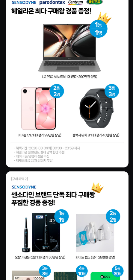 센소다인도 전동칫솔, 상품권 등 추가 혜택이 따로 구성되어 있습니다.
