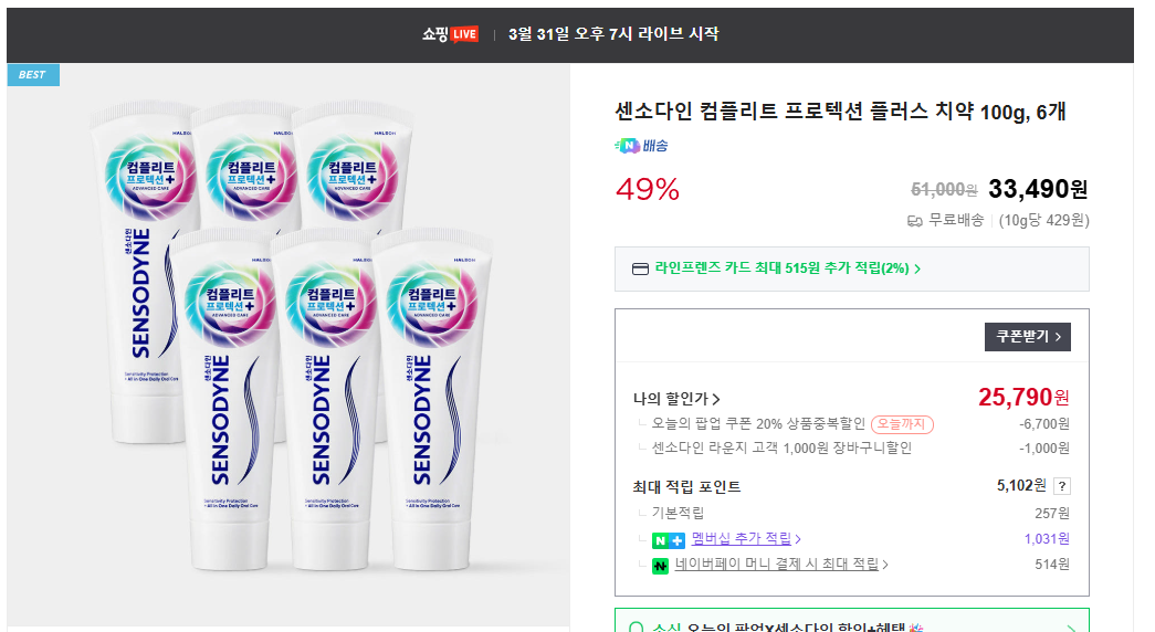 저는 31일 저녁 7시 라이브 혜택도 챙기려구요~