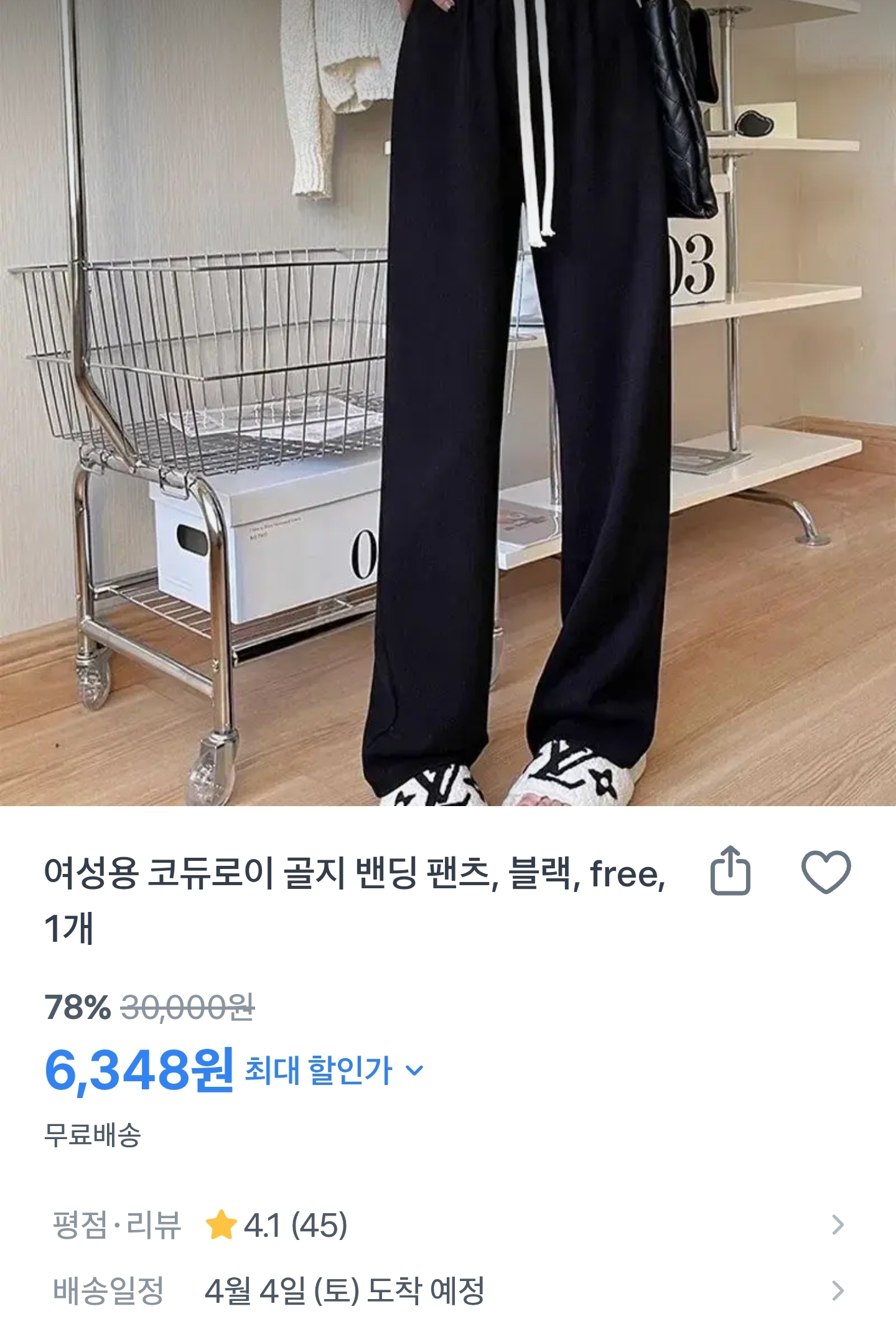 바지 한 장 6,900원이면 저렴하게 아무때나 입기 좋아보입니다.
