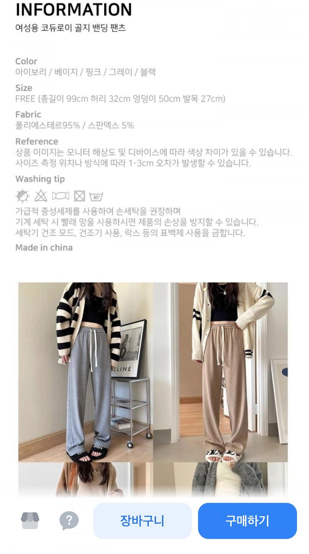 핏 예쁜 얇은 골덴 일자바지라 매치하기 쉬운편입니다.