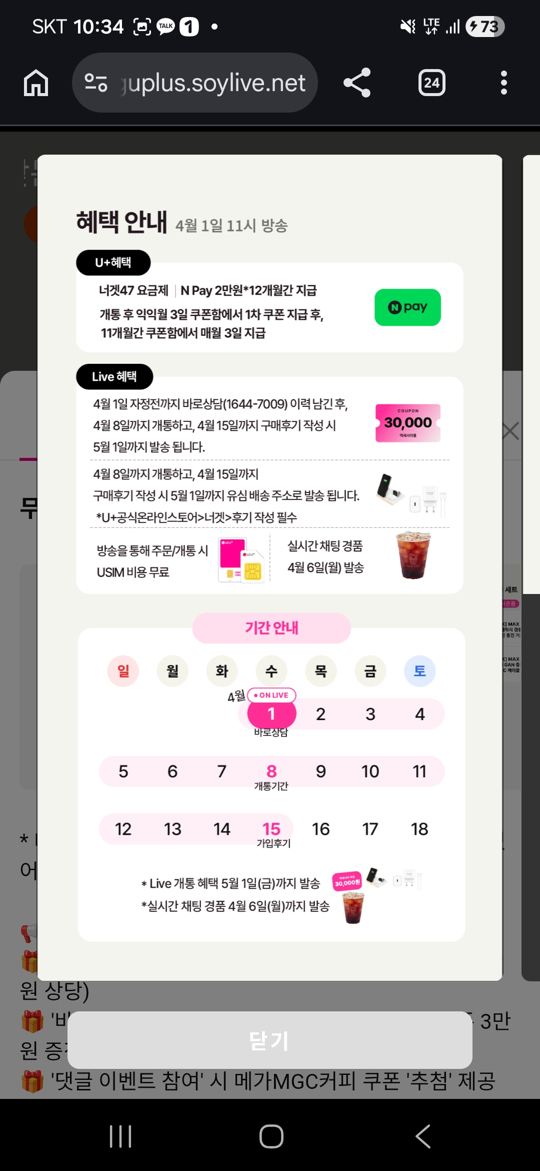 라이브 혜택으로 유심비 무료, 액세서리몰 3만쿠폰, 3in1 무선충전기 세트 지급