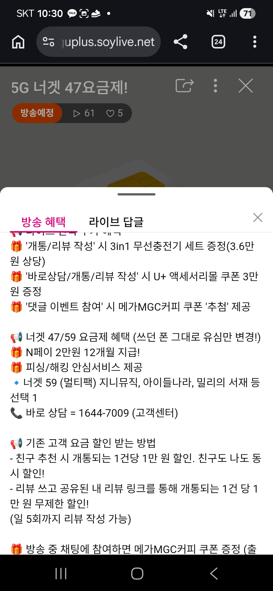 가성비 요금제 찾으면 라이브 추가 혜택 있을 때 확인해 보세요..