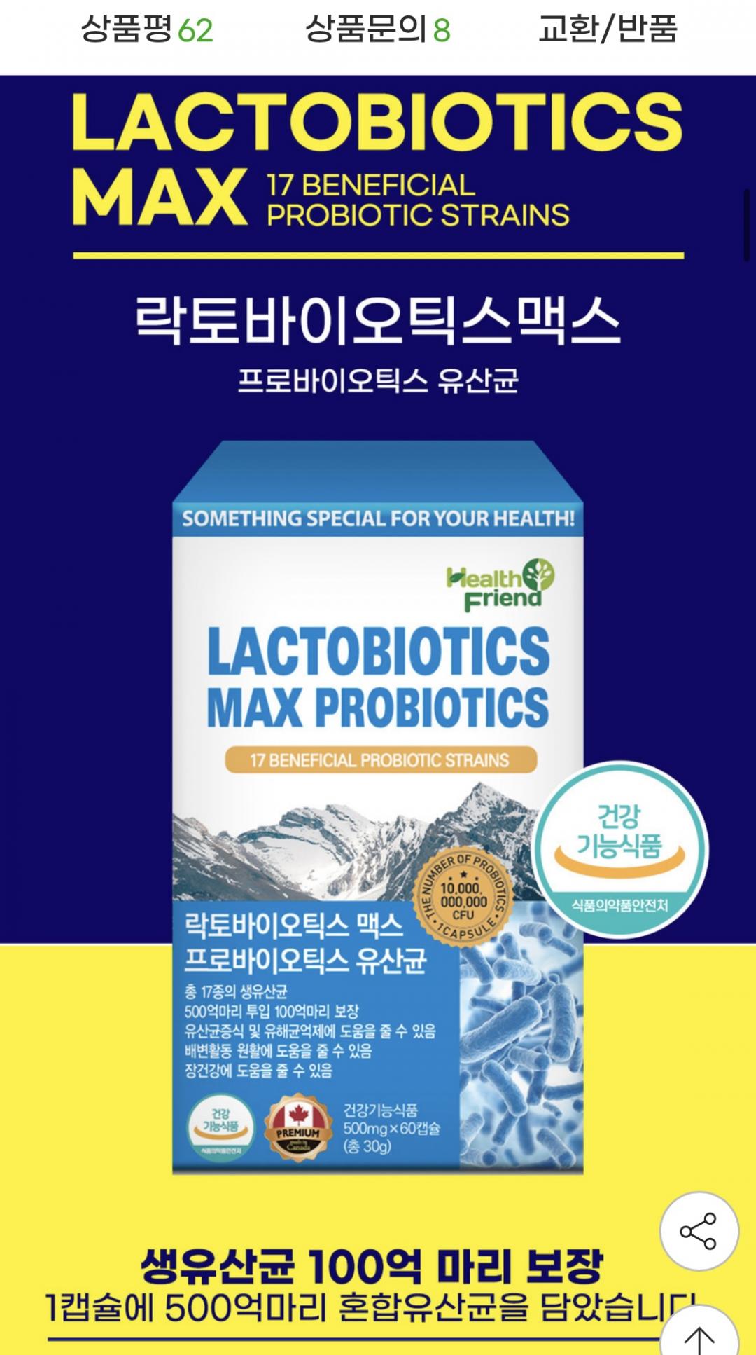 유산균수 높은 가성비 좋은 유산균 제품 입니다