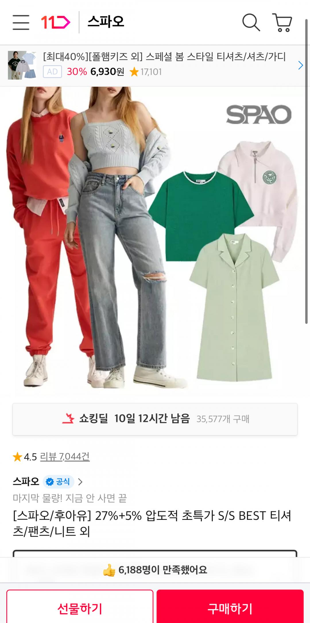 [11번가] 스파오 후아유 s/s best 모음 (5,900원~/무료) > 국내핫딜