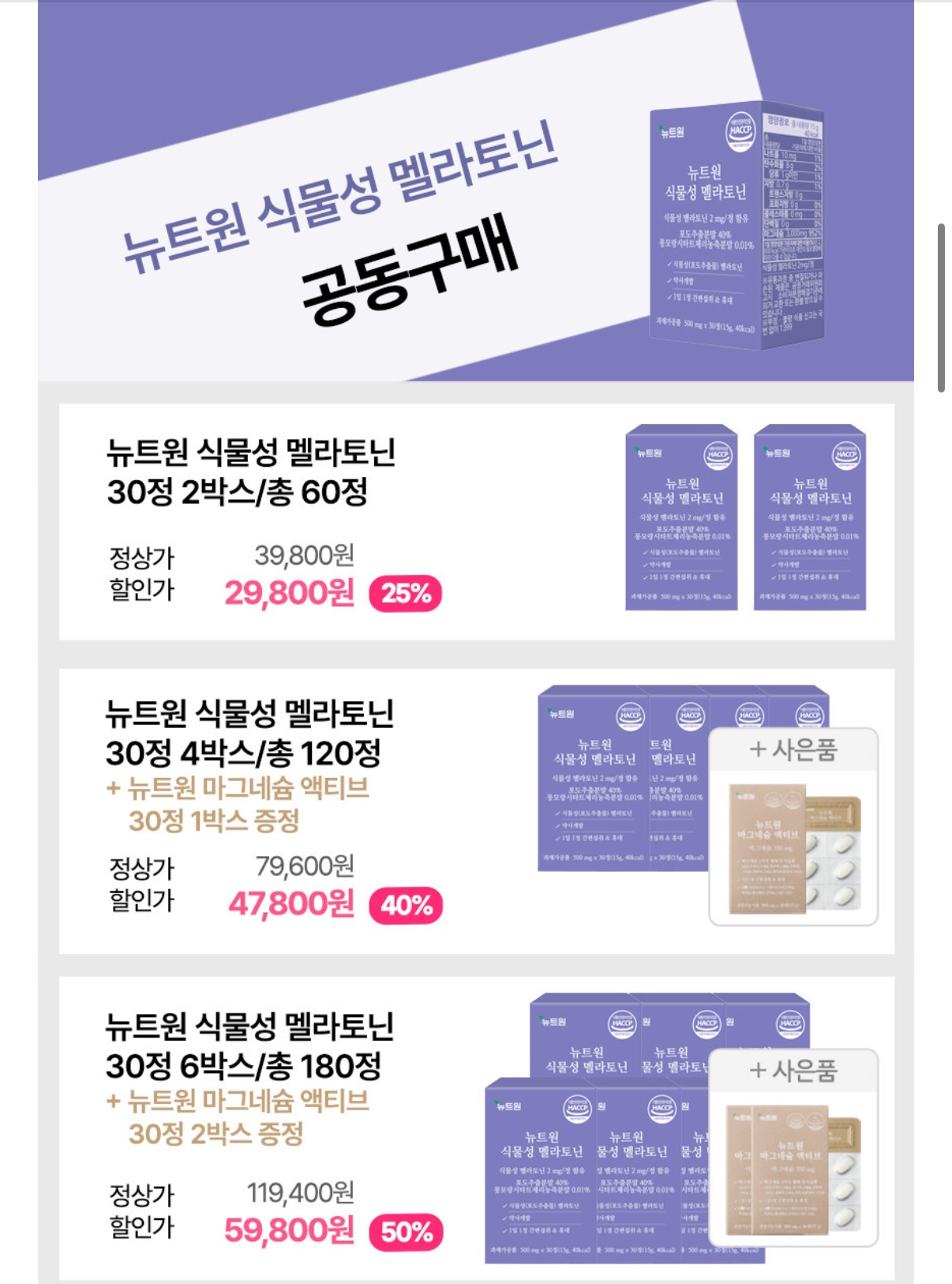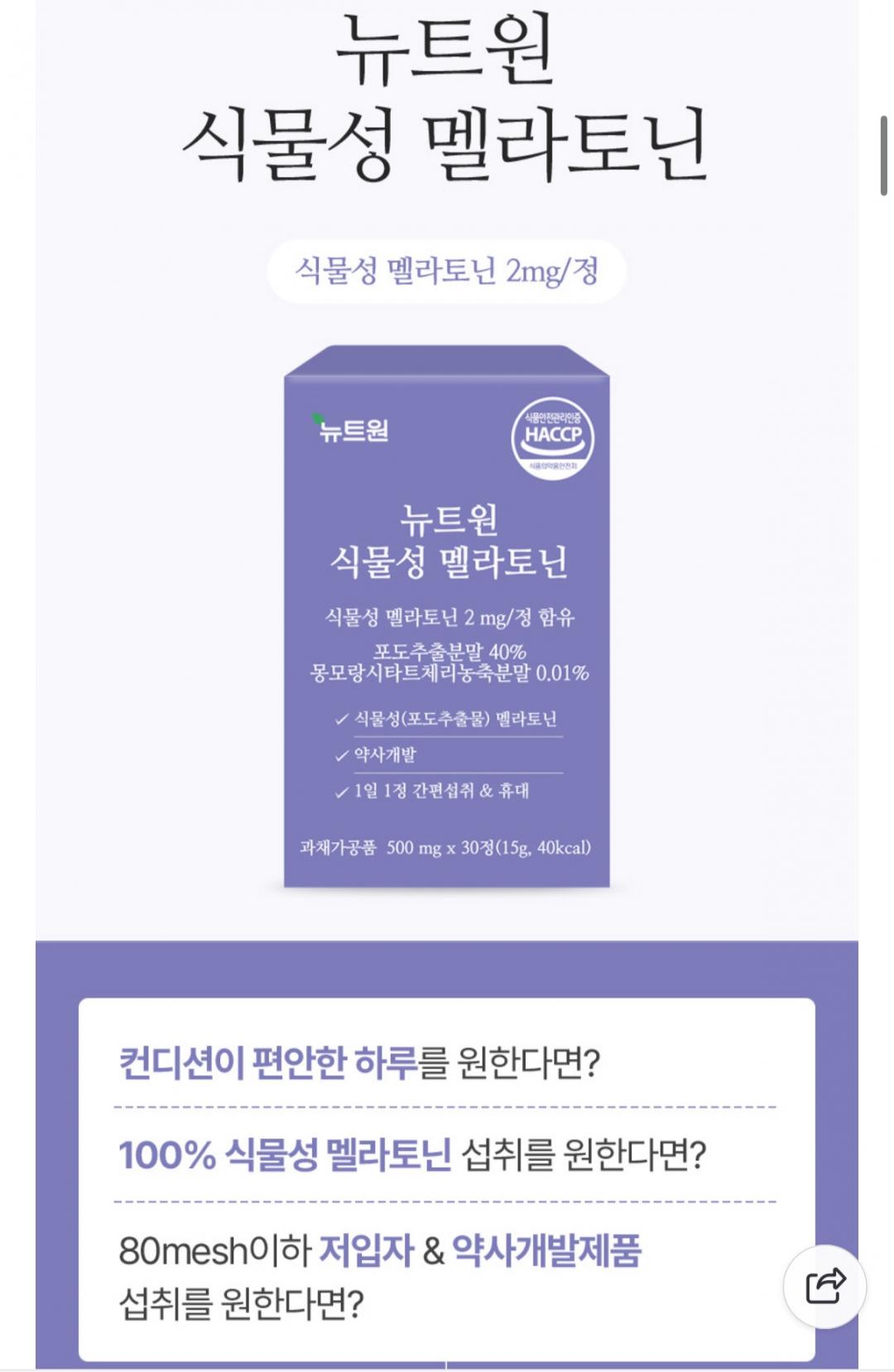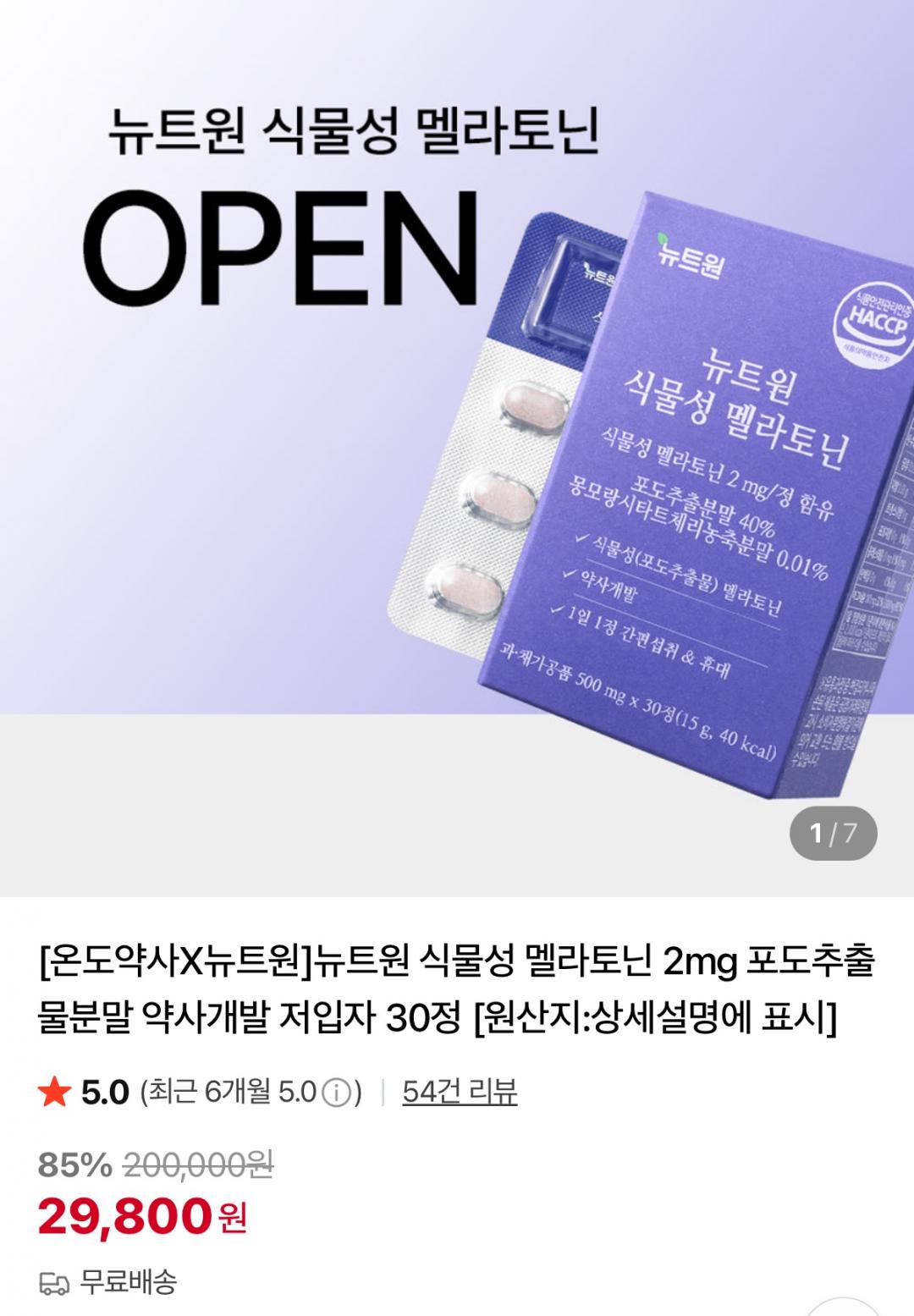 [네이버] 약사공구 숙면영양제 뉴트원 멜라토닌 2mg 2개월분 (29,800원/무료)