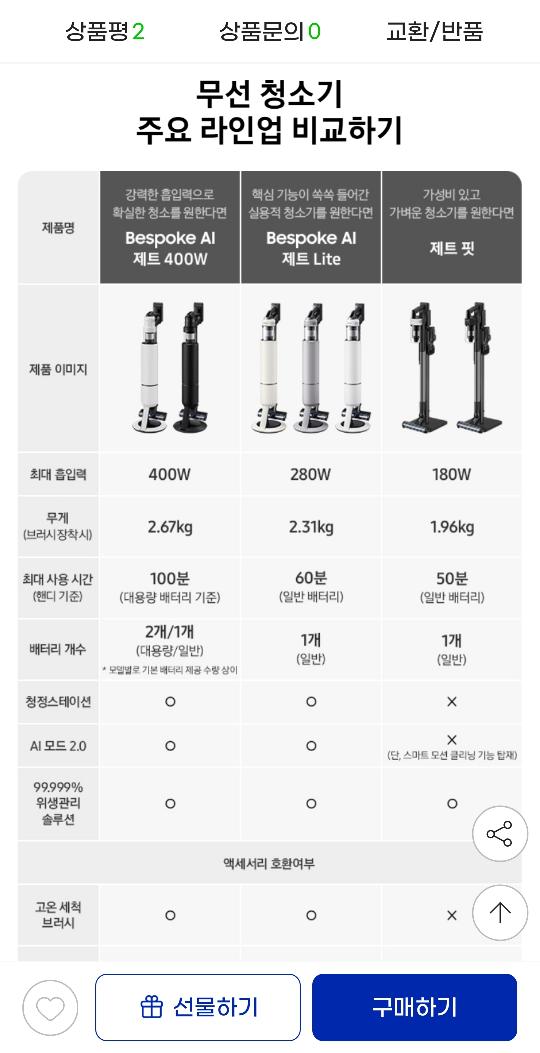 제품 특징으로는 삼성 무선청소기 라인업 중 가장 가볍습니다.