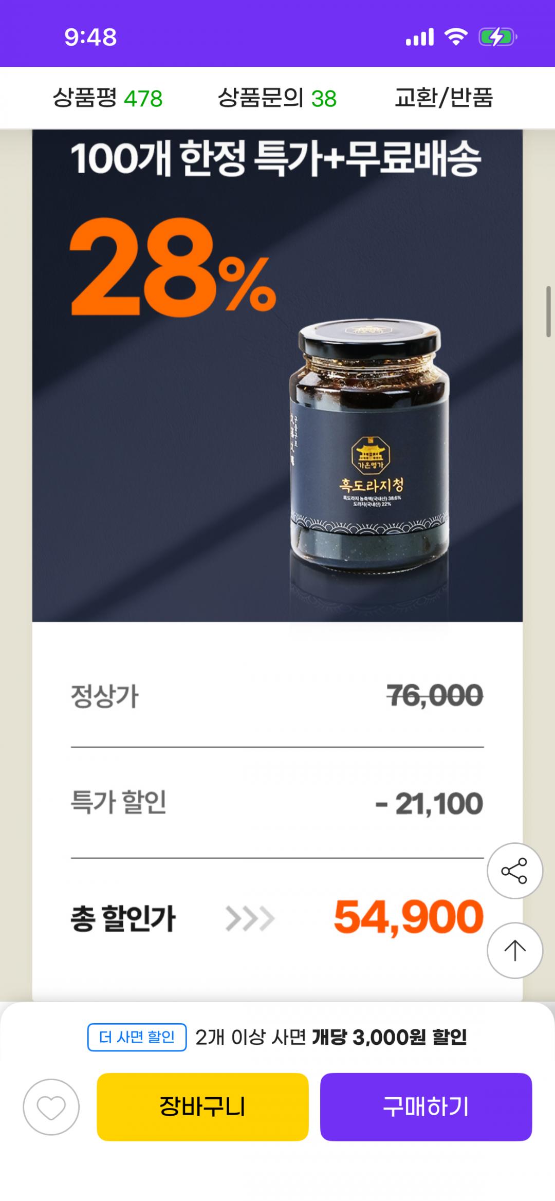 [지마켓] 흑도라지청 600g 구증구포 도라지청 (46,900원/무료) > 국내핫딜