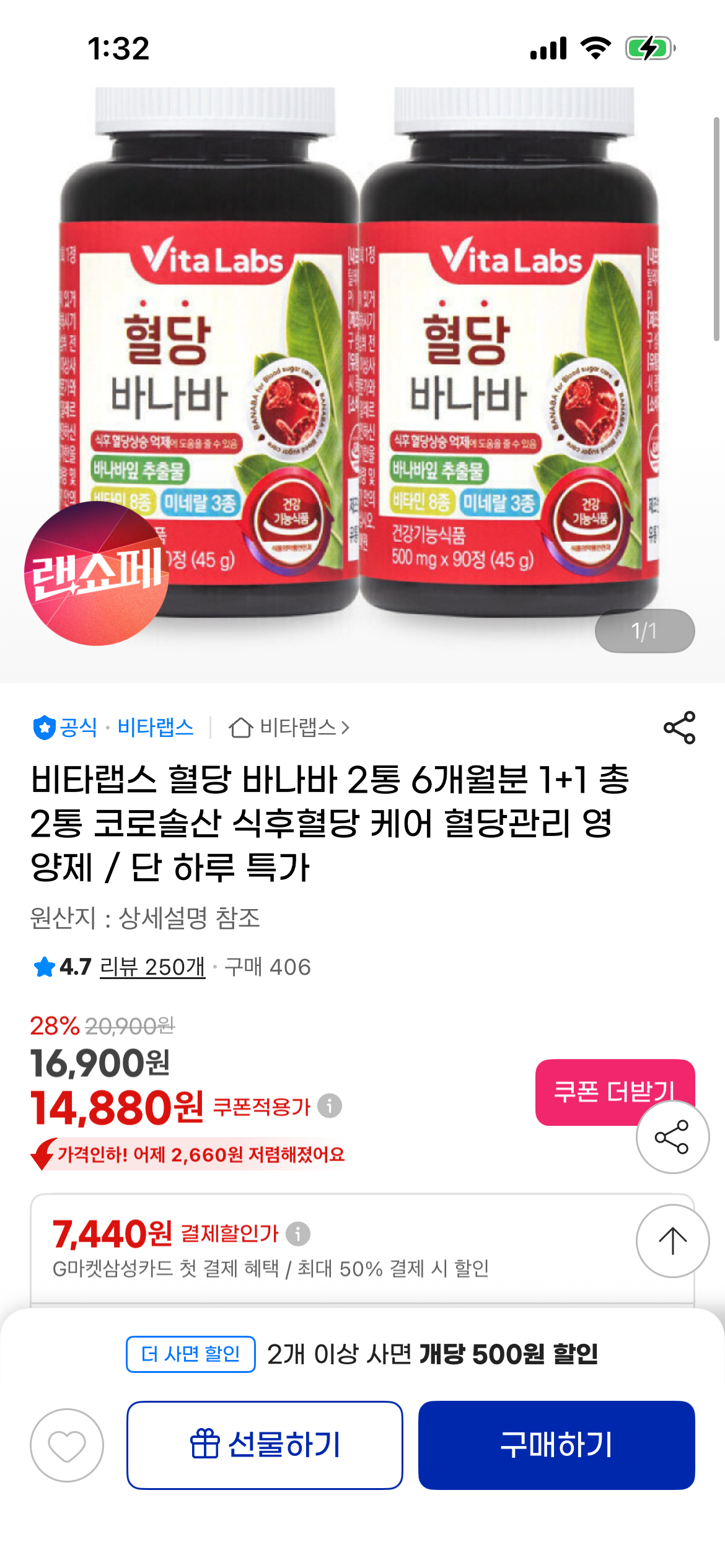 [지마켓] 비타랩스 혈당 바나바 2통 6개월분 1+1 (14,880원/무료) > 국내핫딜