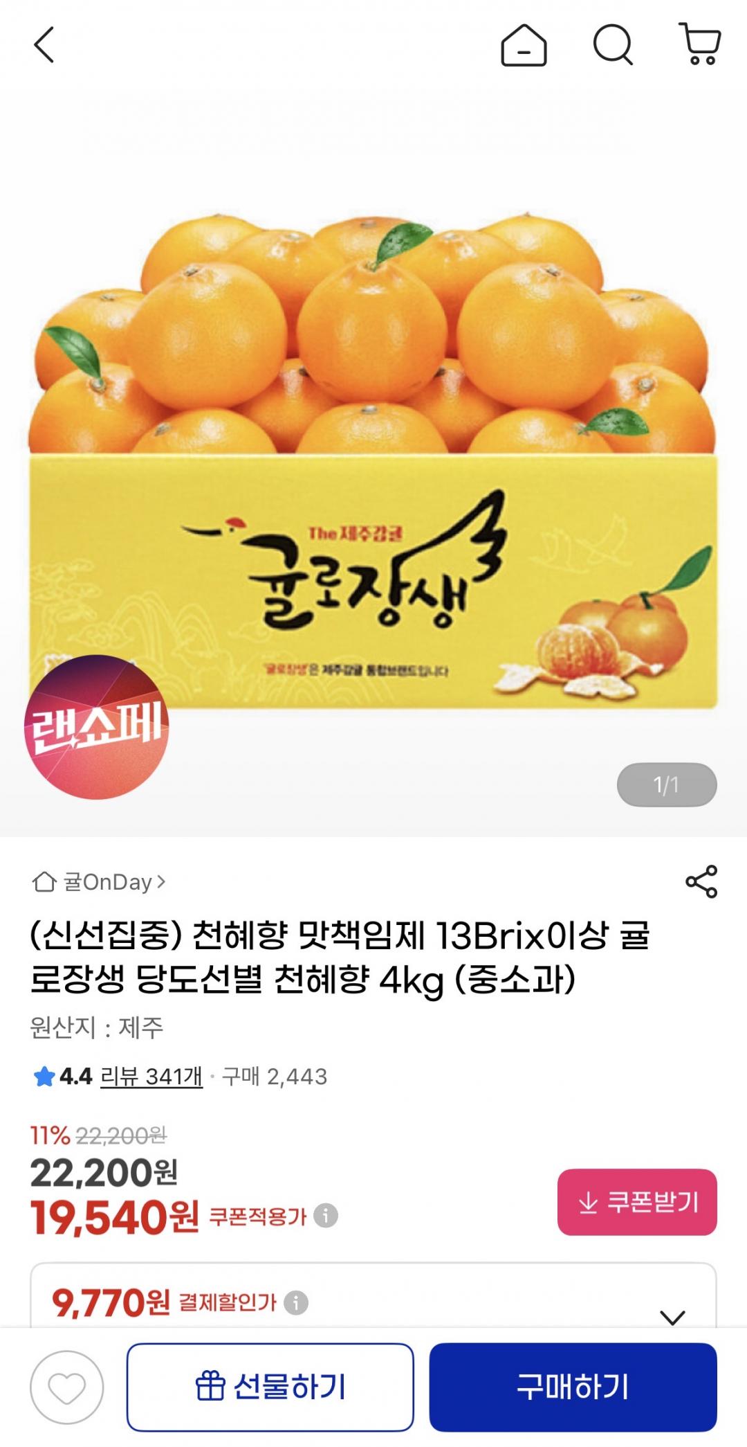 [지마켓] 천혜향 4kg 중소과 (19,540원/무배) > 국내핫딜