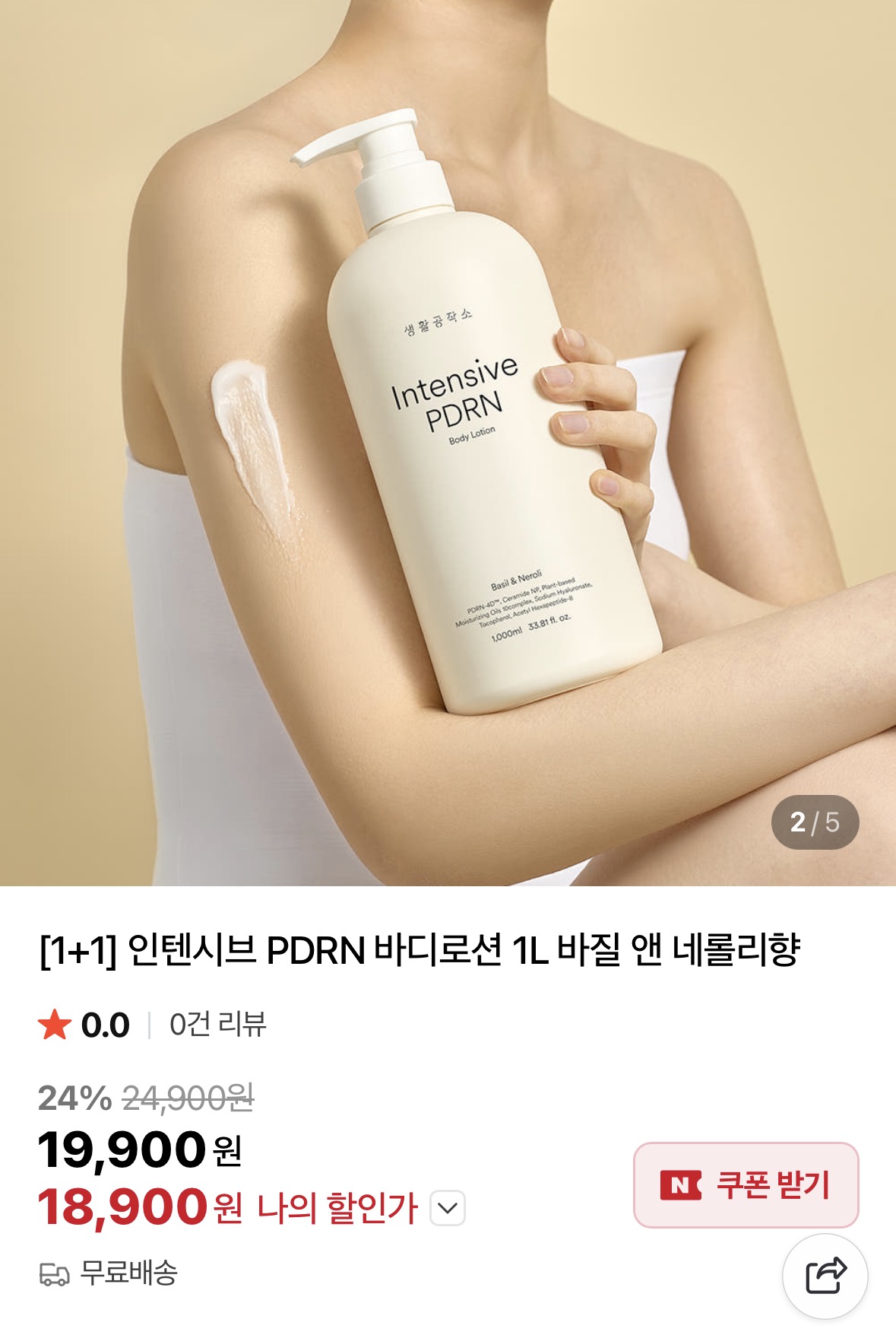 [네이버]인텐시브 피디알엔 바디로션 1L 바질 앤 네롤리향 1+1(18,900원/무료)