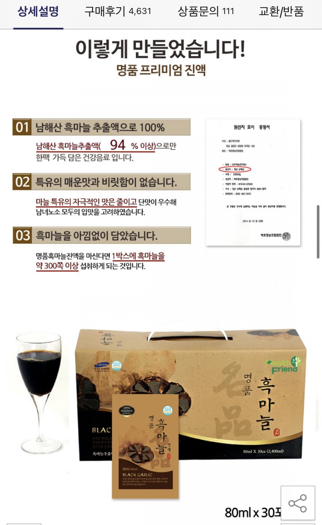 한포에 흑마늘 추출액 94%이상 함유라 함유랑 좋습니다