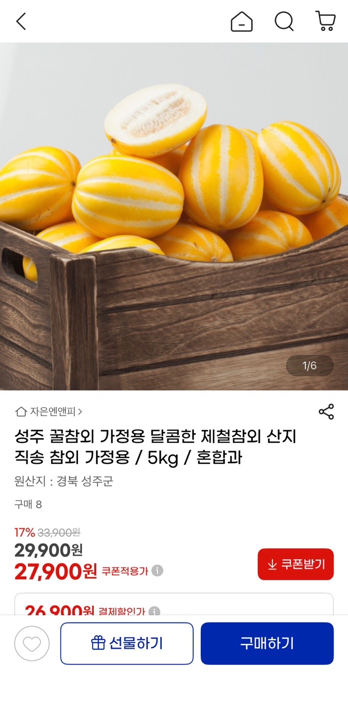 [지마켓] 성주 산지직송 가정용 제철 꿀참외 5kg (27,900원/무배) > 국내핫딜