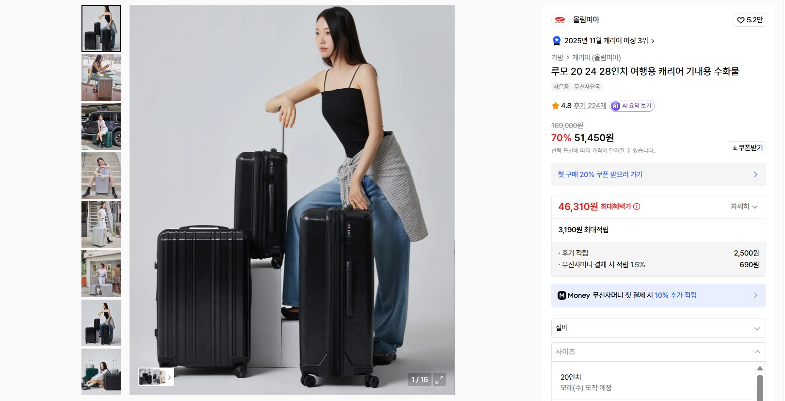 [무신사] 루모 여행용 기내용 캐리어 모음 (46,310원~ / 무료) > 국내핫딜