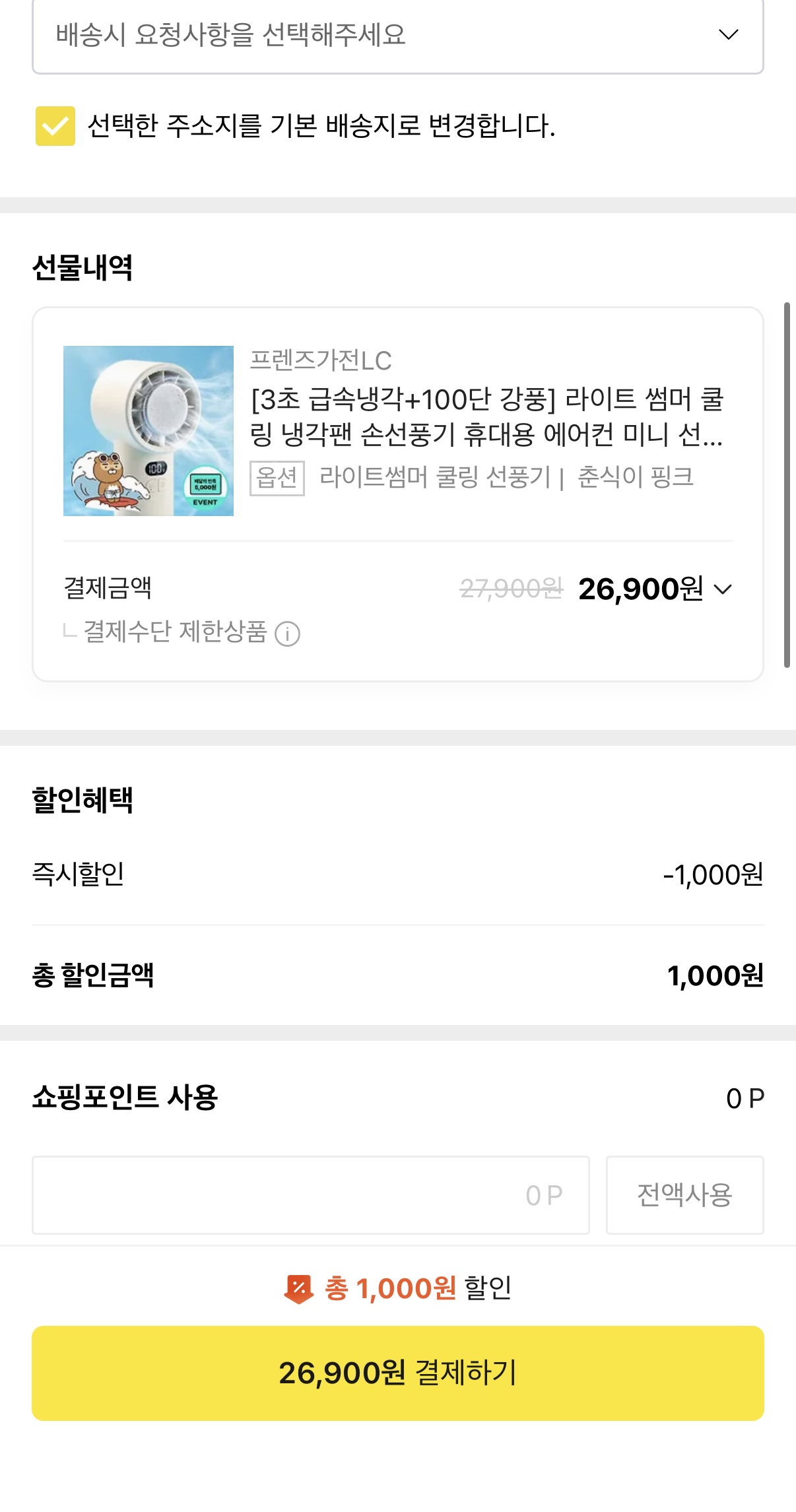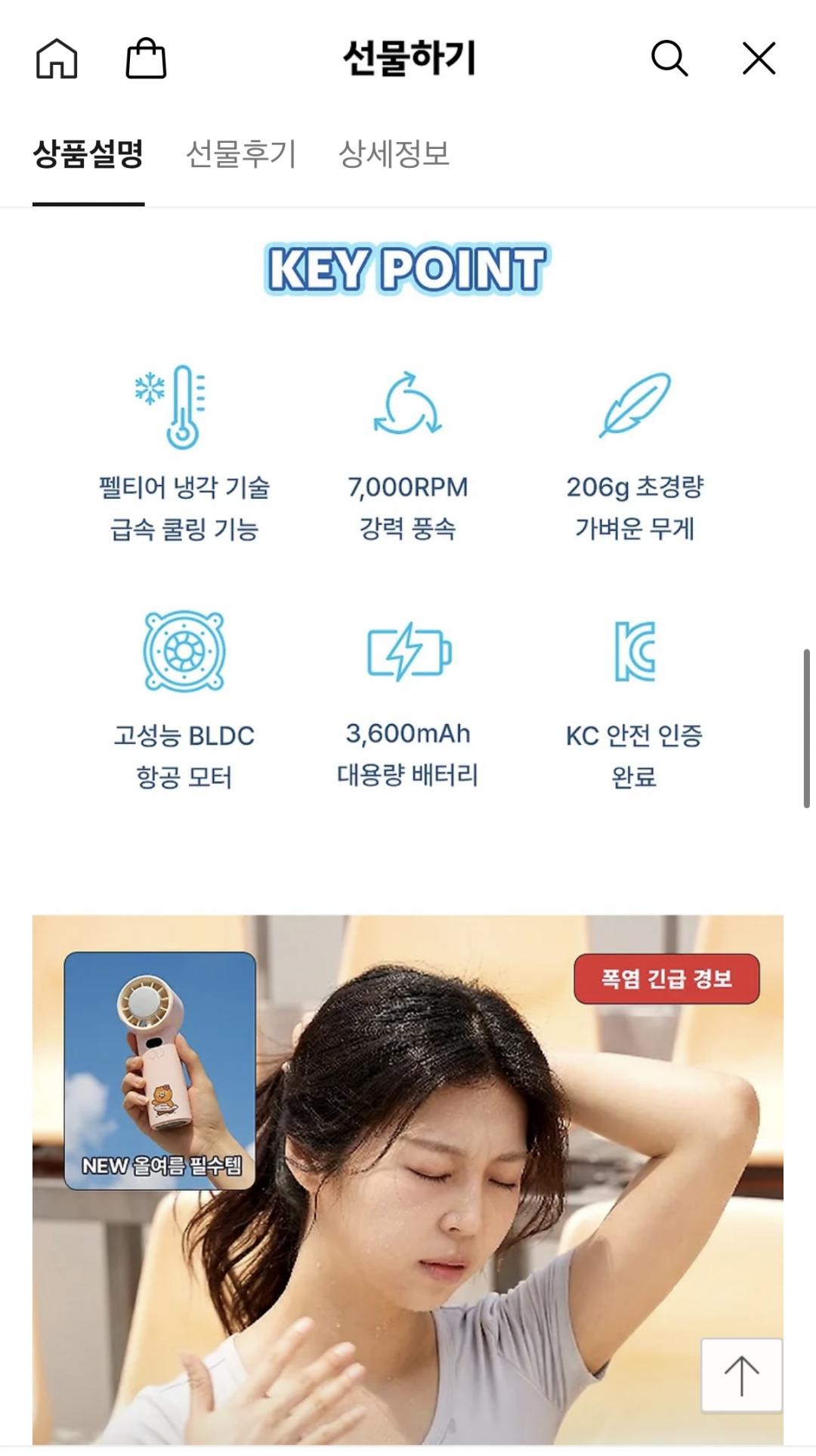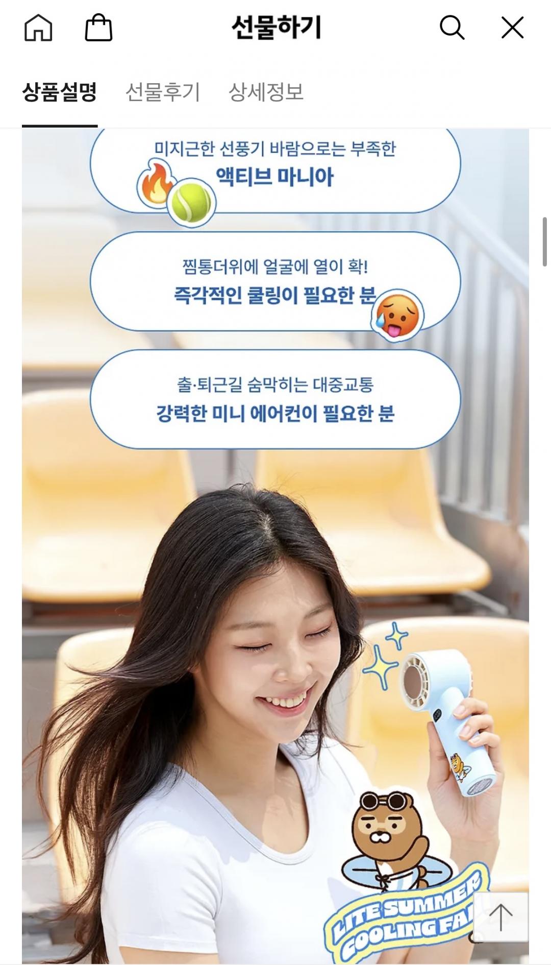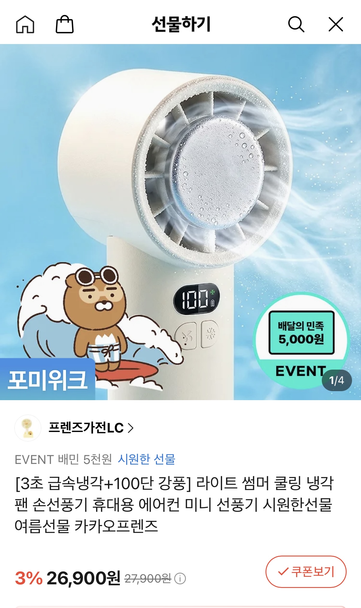 [선물하기]3초 급속냉각+100단 강풍 카카오 라이트 썸머 쿨링 냉각팬(26,900/무배) > 국내핫딜