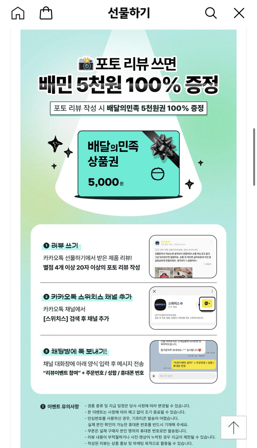 구매하고 포토 리뷰 남기면 배민 5천원 상품권 100% 준다네요