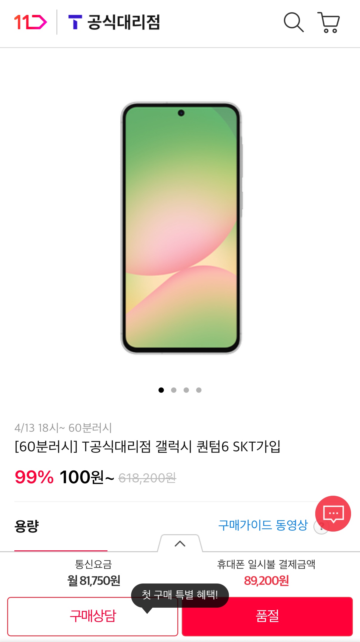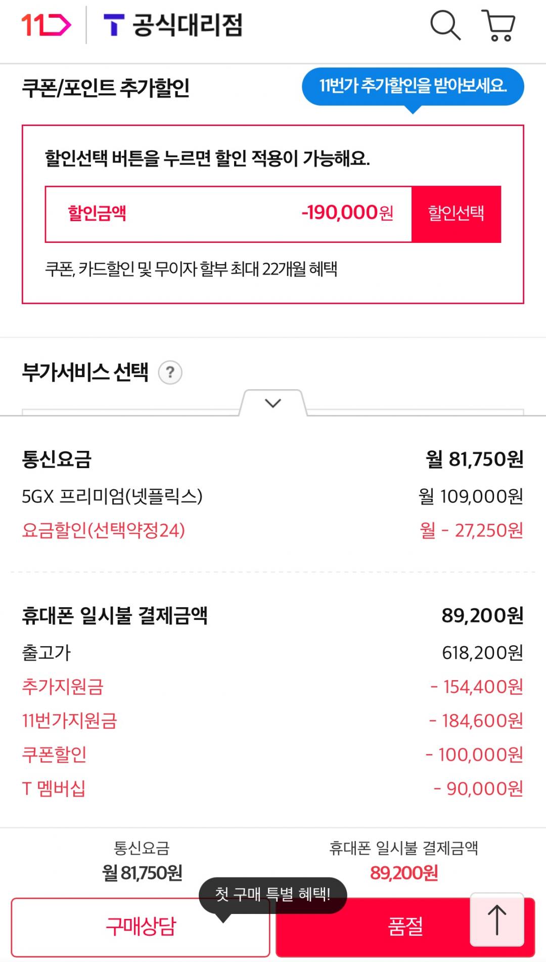 SKT 기변 T멤 9만원 할인+10만 쿠폰적용시 선약기준 8만대