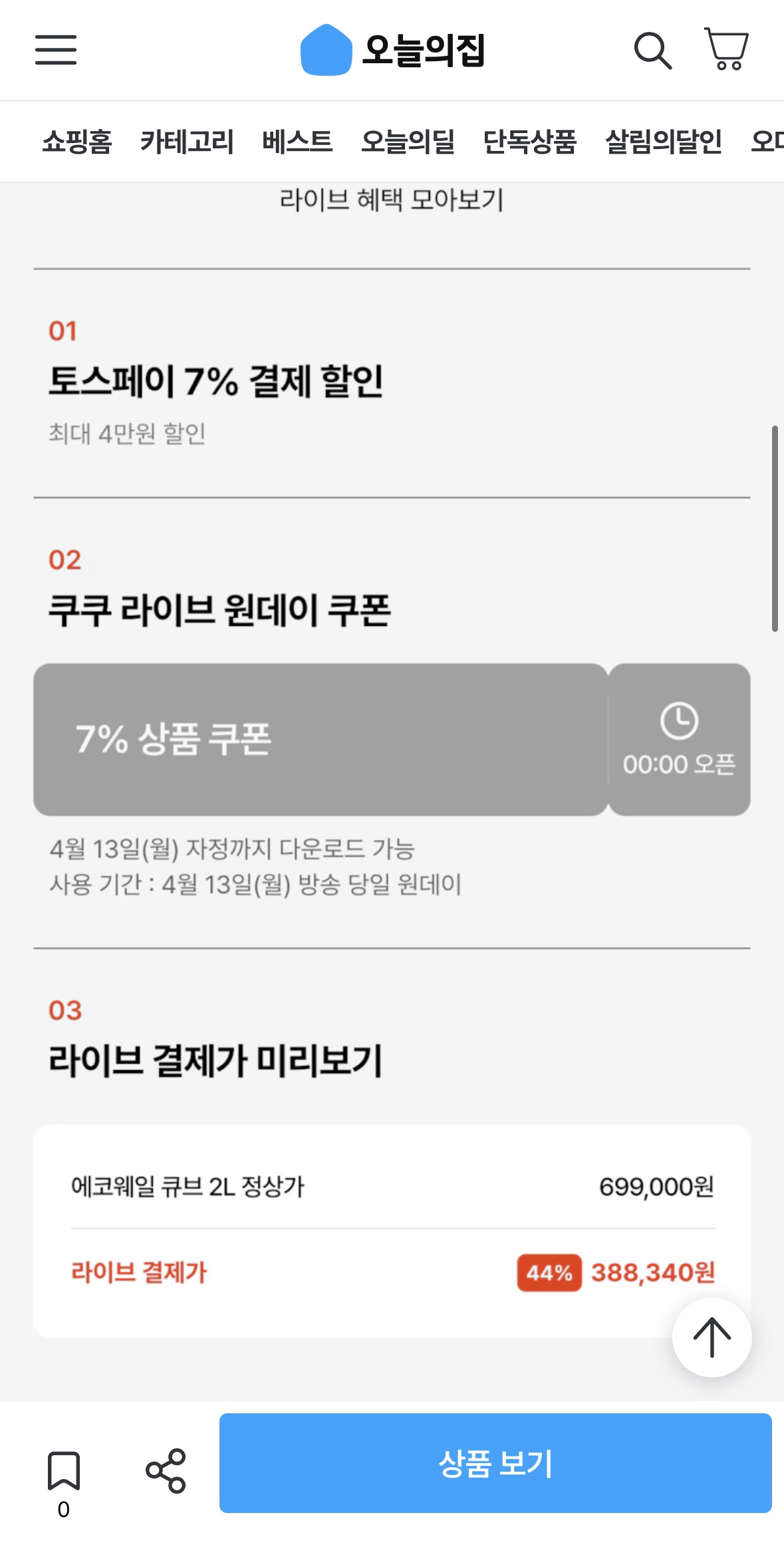 [오늘의집] 쿠쿠 에코웨일 큐브 라이브 (388,340원/무배) > 국내핫딜