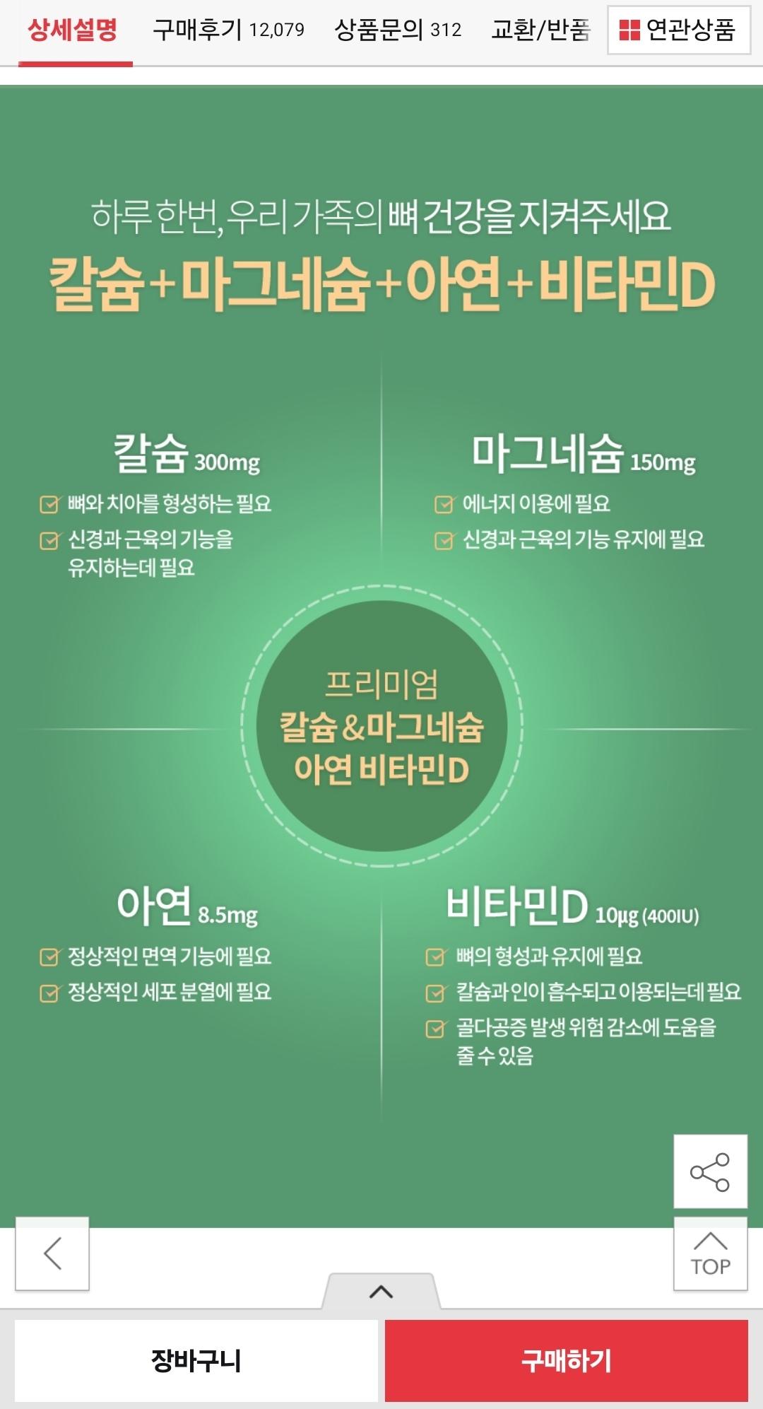 [옥션] 칼슘 마그네슘 아연 비타민D 6개월분 180정 (11.900원/무료)