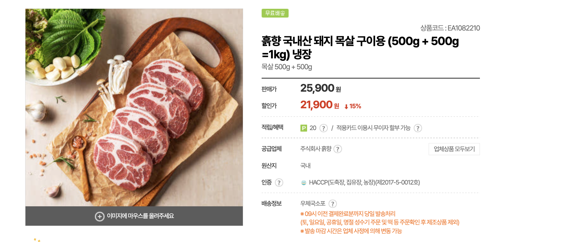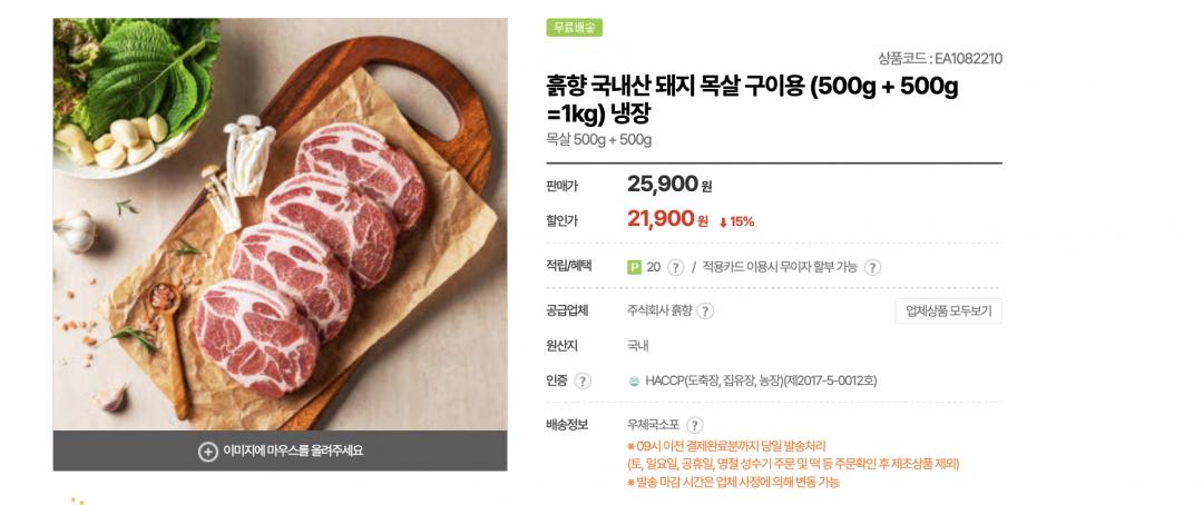 목살 저렴하게 올라와서 공유드려요 흙향 국내산이고 500g + 500g 두 팩 구성이에요