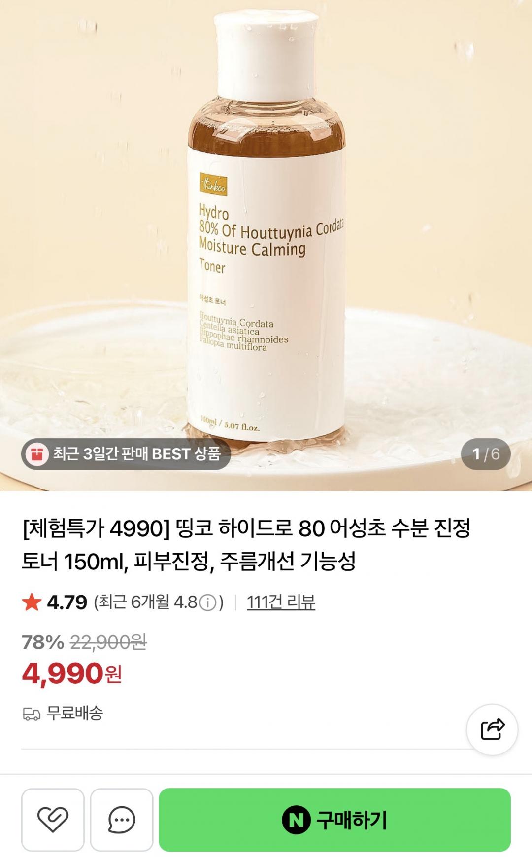 [네이버] 어성초 수분 진정 토너 150ml (4,990원/무배) > 국내핫딜