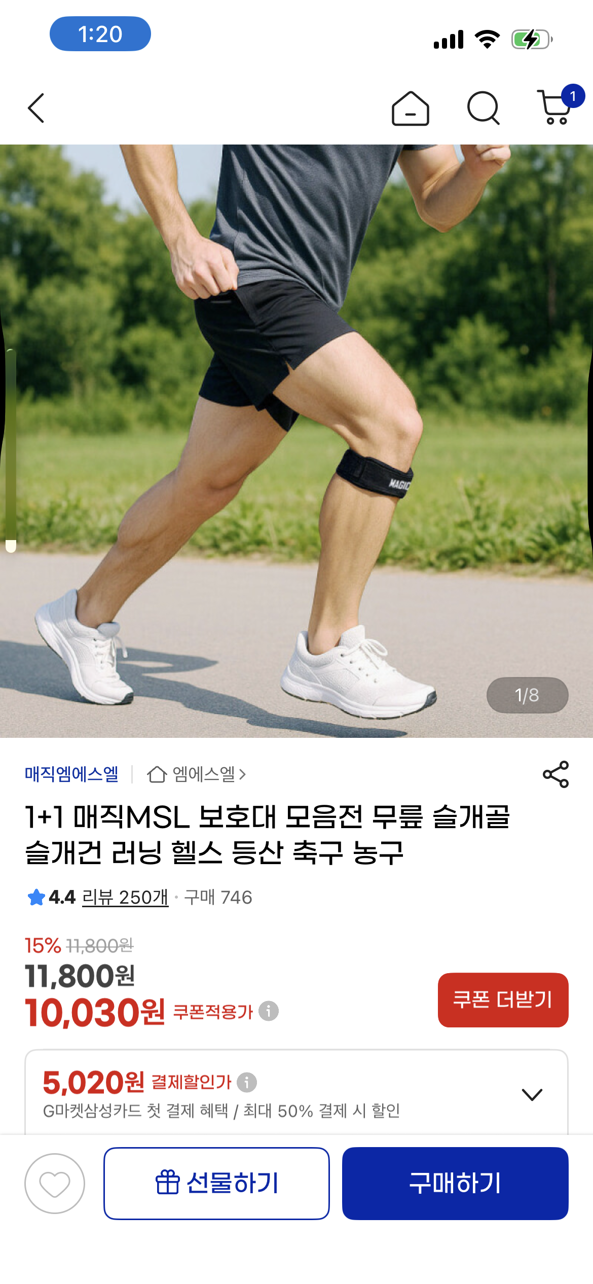 [지마켓] 무릎 슬개골 슬개건 러닝 보호대 1+1 (10,030원/무료)