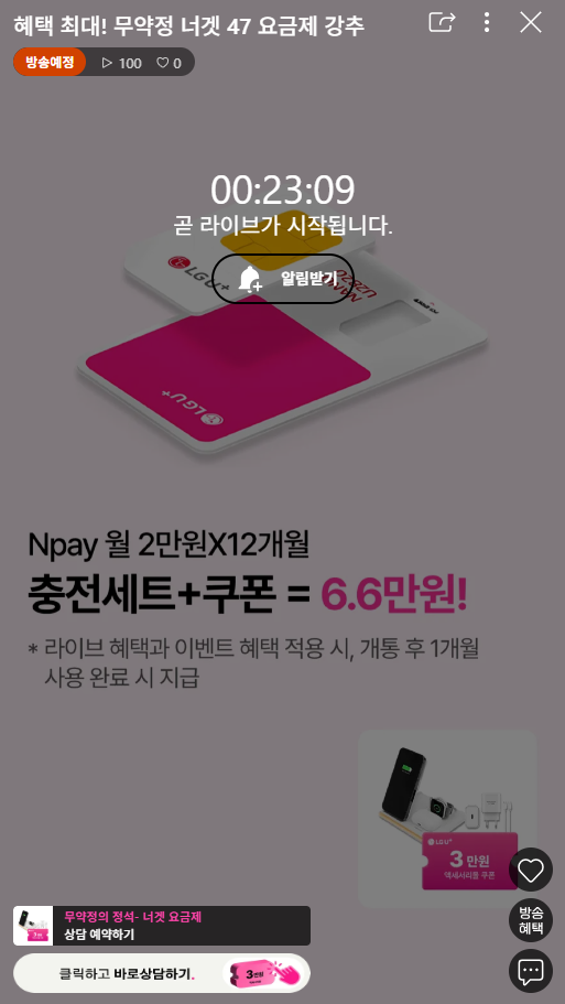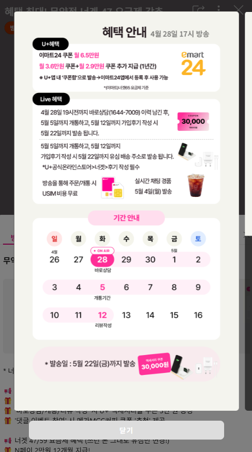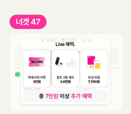 유플러스 너겟 47요금제 라이브 혜택 괜찮네요~
