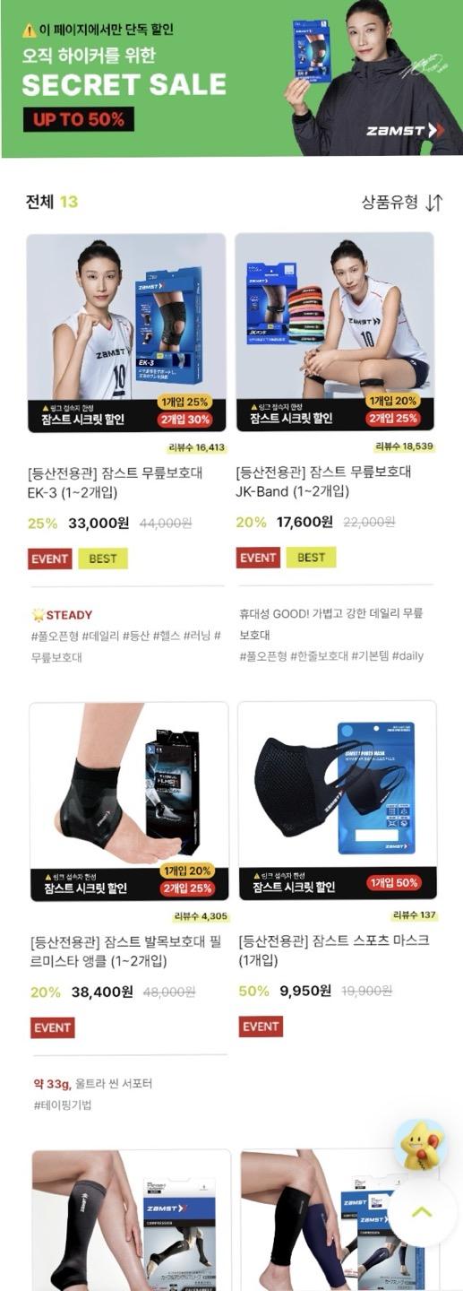 잠스트 보호대 이 링크에서 최저가로 할인하고 있네요 (등산 카페에서 퍼온거라 아래 링크로만 접속 가능해요) 최대 50% 할인에 2개입 구성도 있고요 무릎,발목,허리,팔꿈치,종아리,인솔 다양합니다 4/16부터 한정수량이라 빨리 없어질 수 있으니 필요하신 분들 참고하세요!