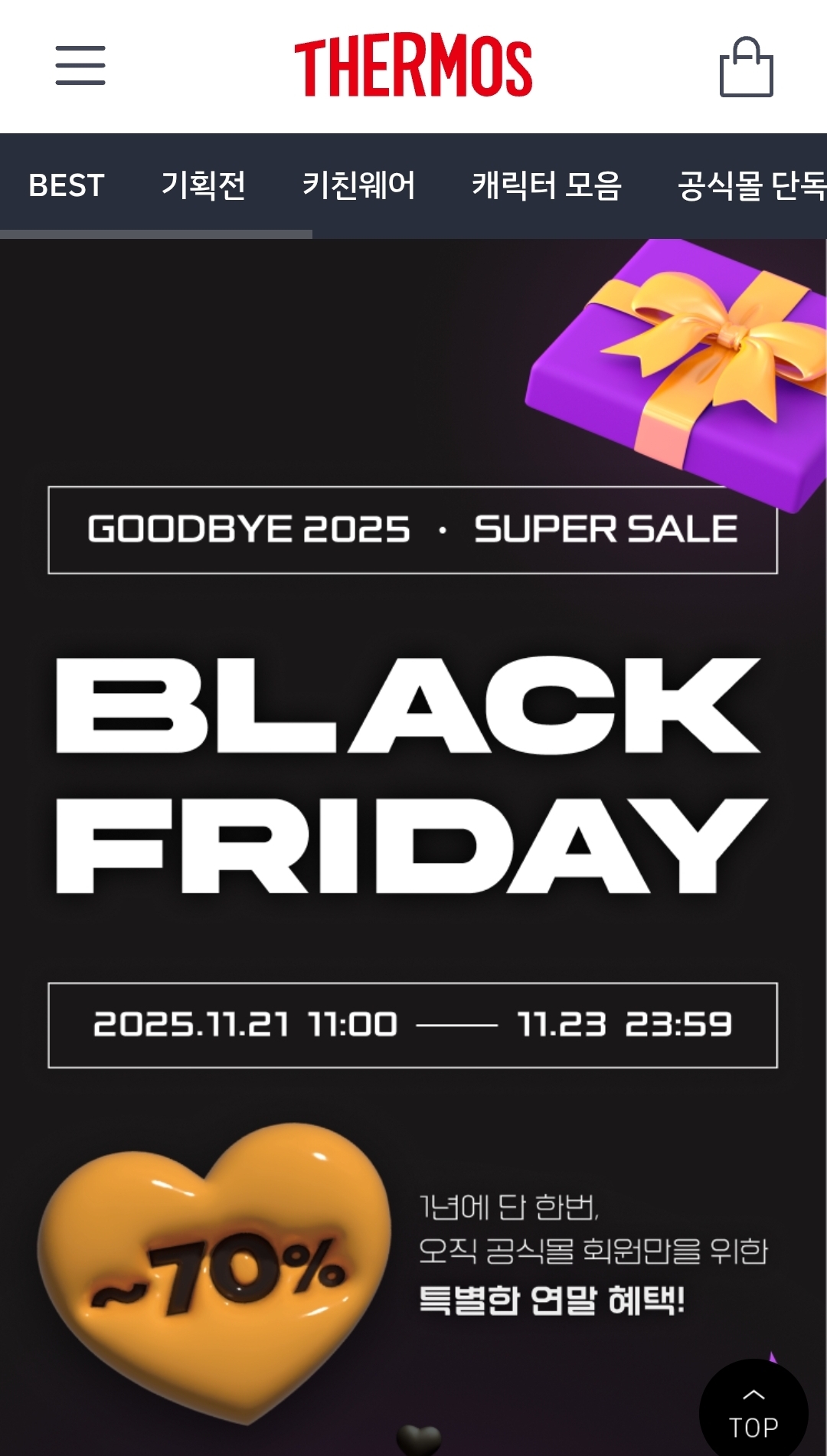 [공홈] 써모스 블랙프라이데이 전품목 ~70%