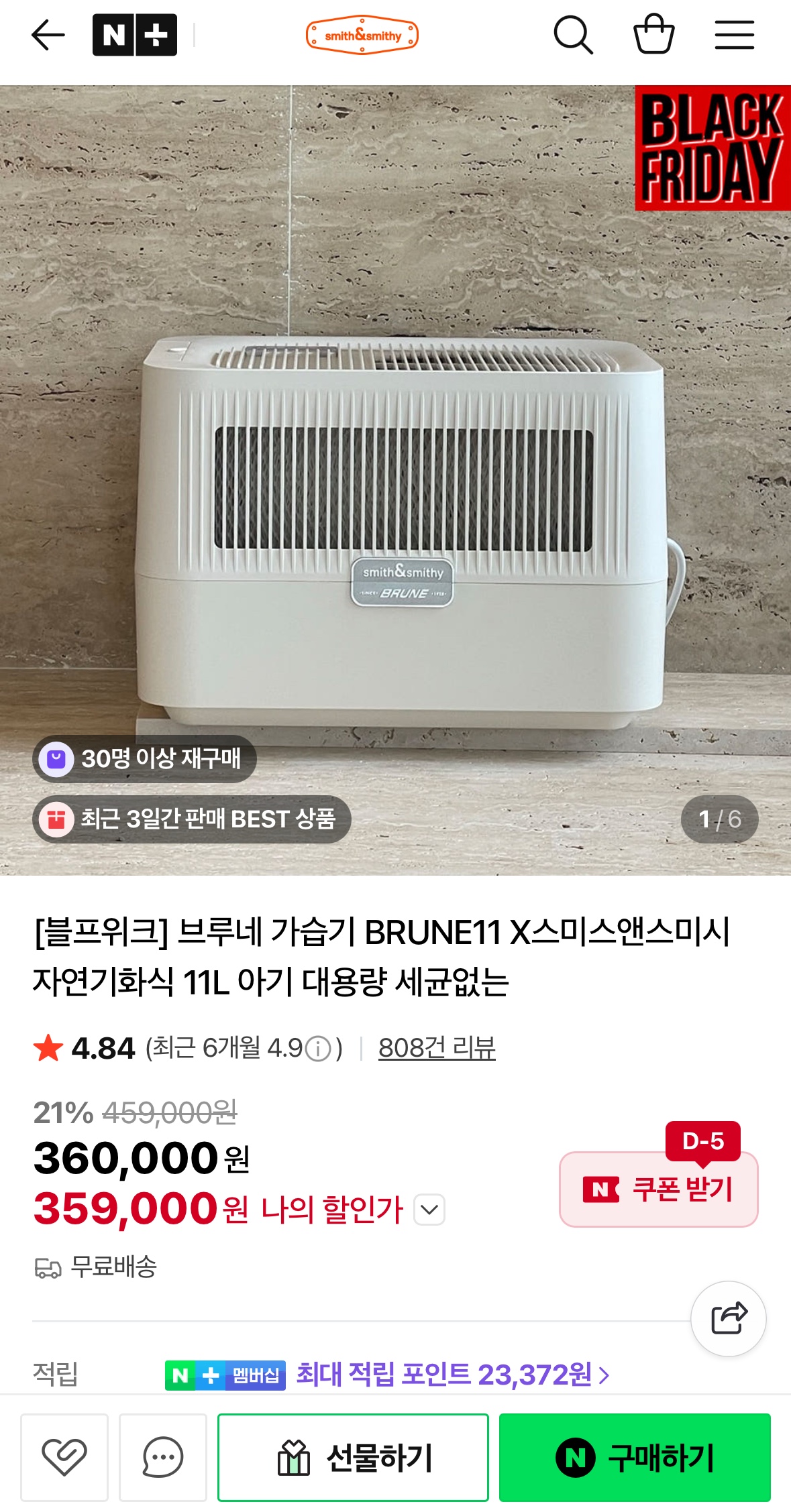[네이버]브루네 가습기 x 스미스앤미시 자연기화식 11L용량 11BRUNE11
