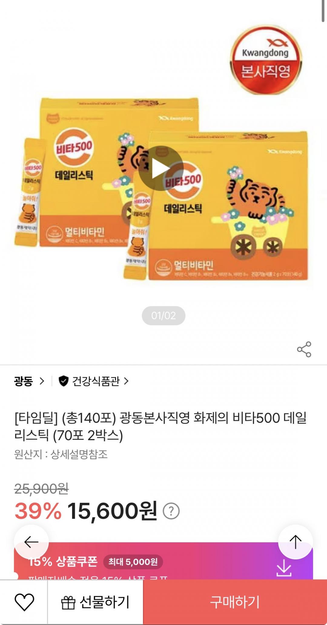 로그인하면은 15,600원 나와서 비타500 음료대신